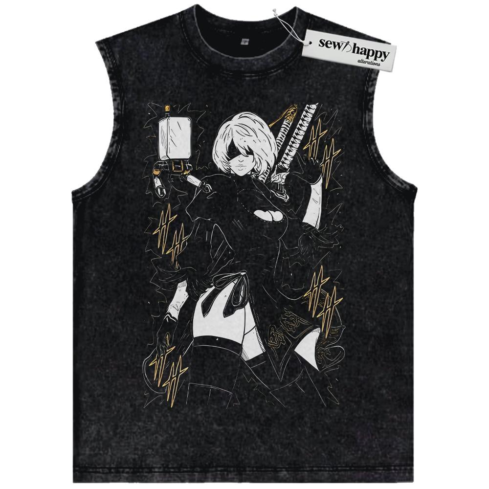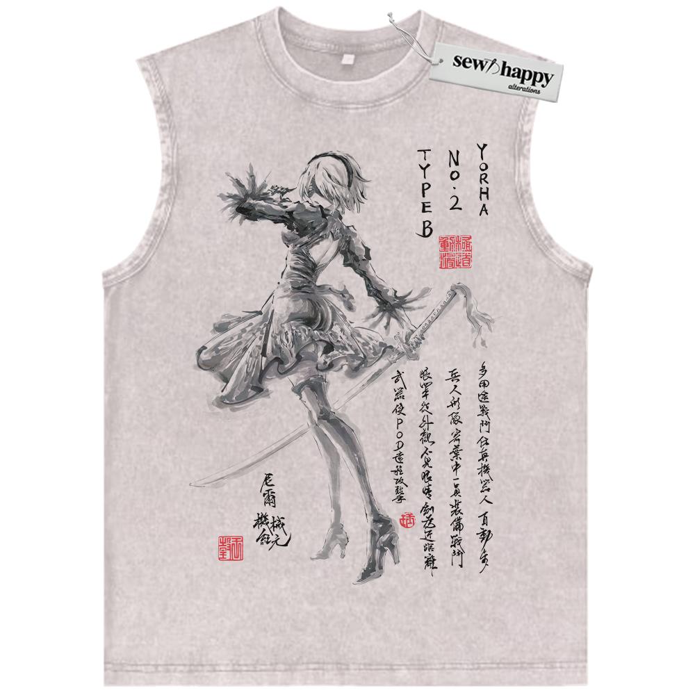 Wash Tank Top 2B NieR:Automata Tank Top, Game Tank Top, Vintage Tank Top