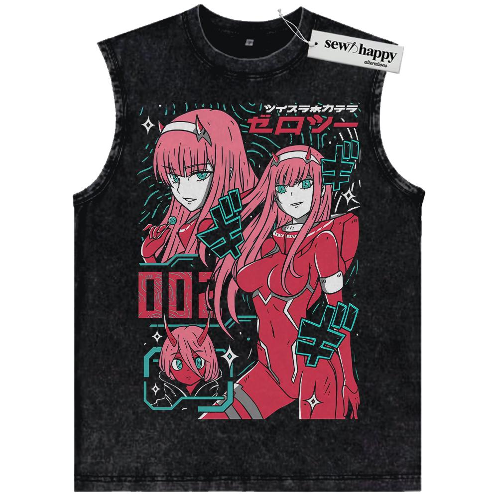 Wash Tank Top Zero Two Tank Top, Darling in the Franxx Tank Top, Anime Tank Top, Vintage Tank Top