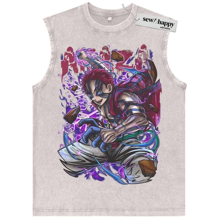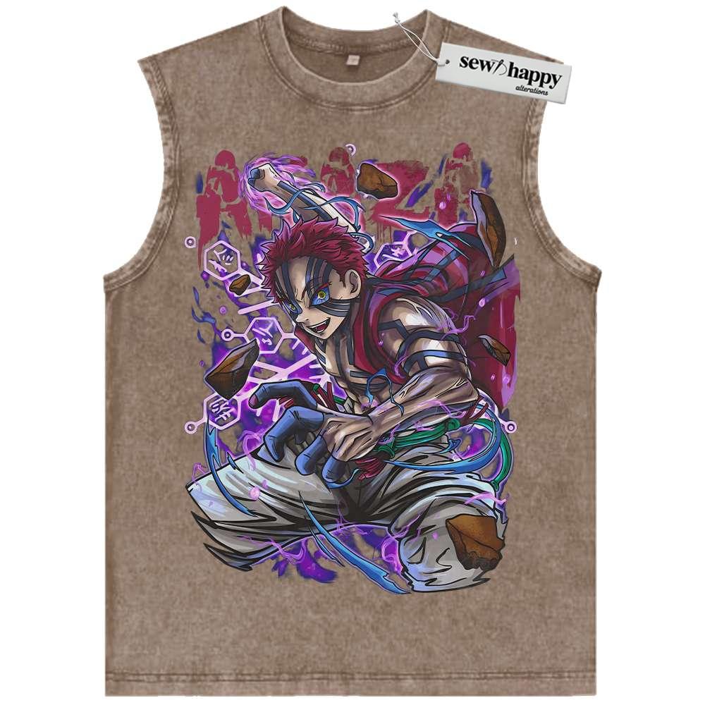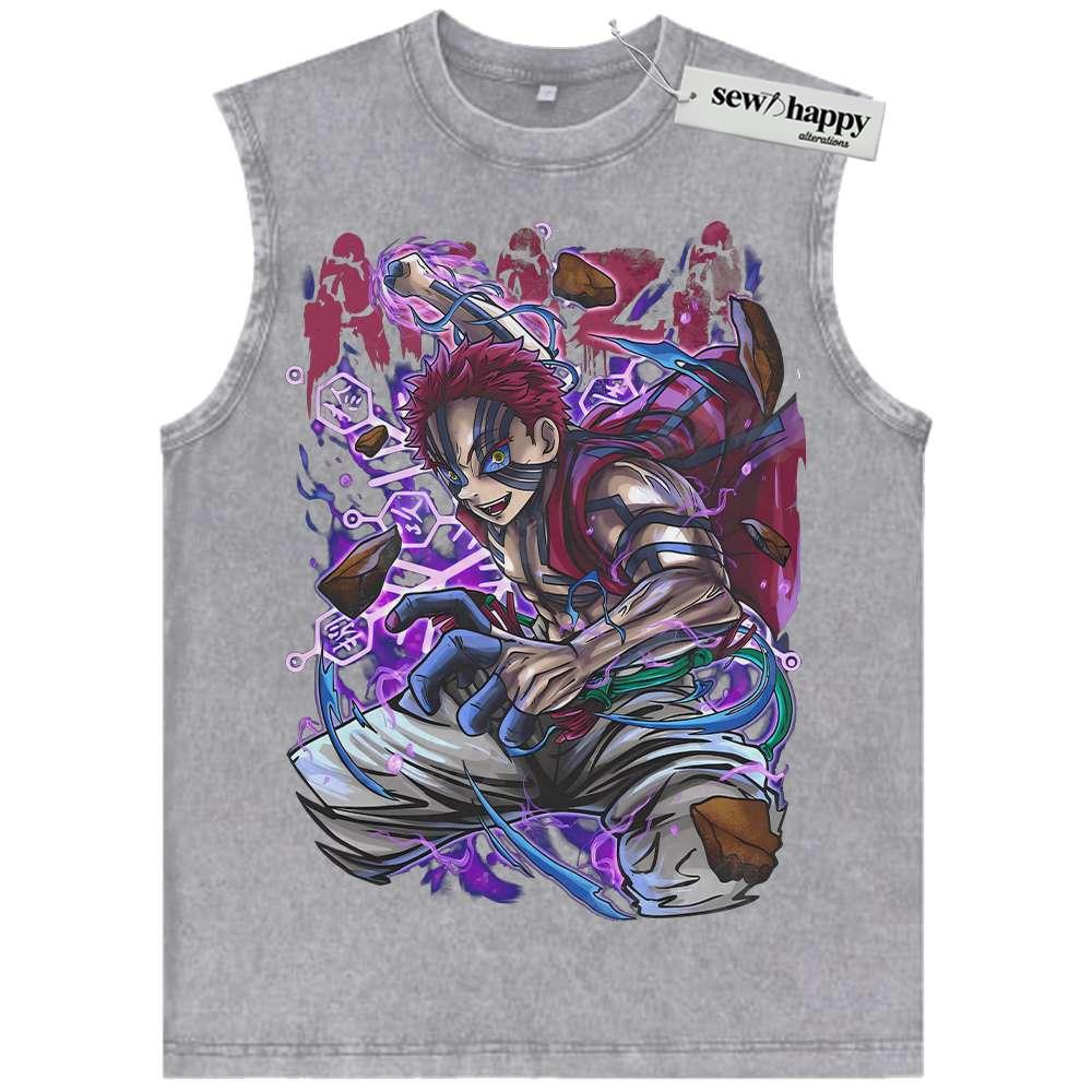 Wash Tank Top Akaza Tank Top, Demon Slayer Tank Top, Anime Tank Top, Vintage Tank Top