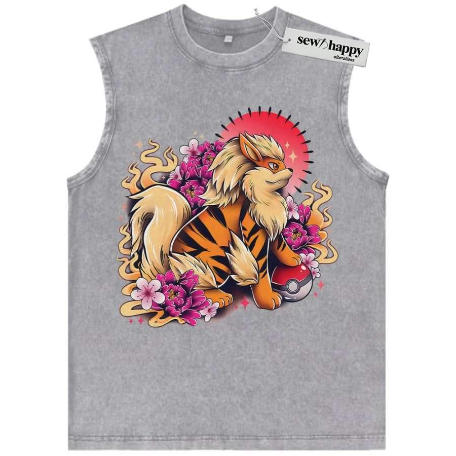 Wash Tank Top Arcanine Tank Top, Pokemon Tank Top, PAnime Tank Top, Vintage Tank Top