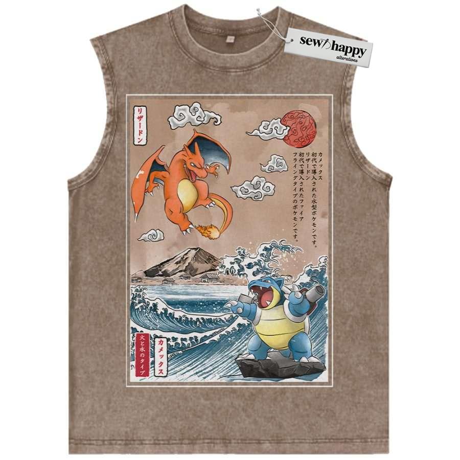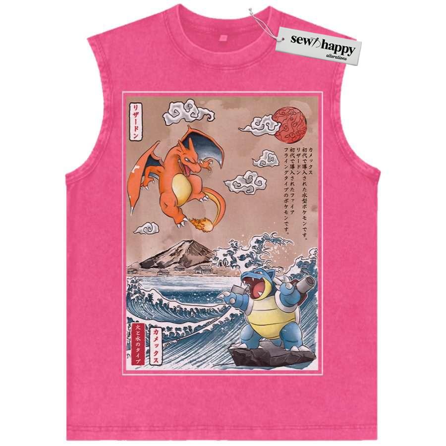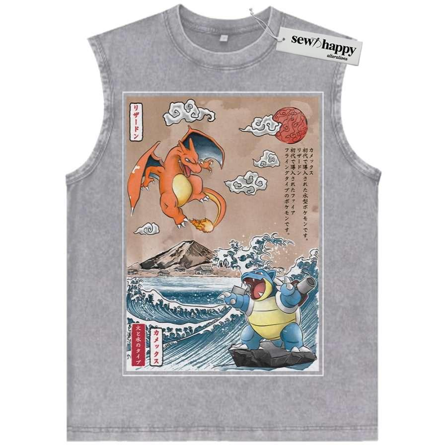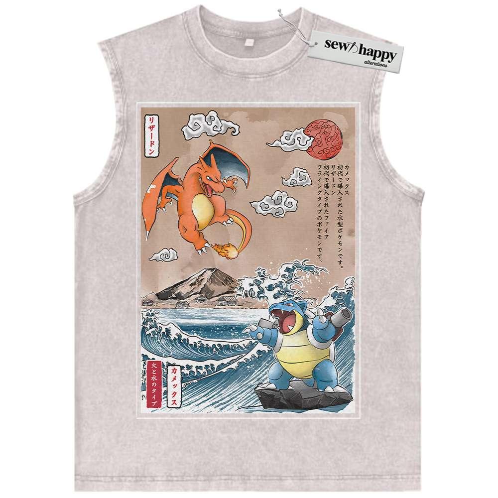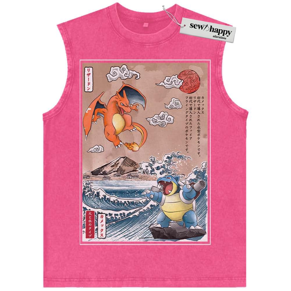 Wash Tank Top Charizard vs Blastoise Tank Top, Pokemon Tank Top, Anime Tank Top, Vintage Tank Top