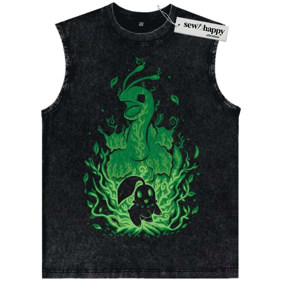 Wash Tank Top Chikorita Tank Top, Meganium Tank Top, Pokemon Tank Top,Anime Tank Top, Vintage Tank Top