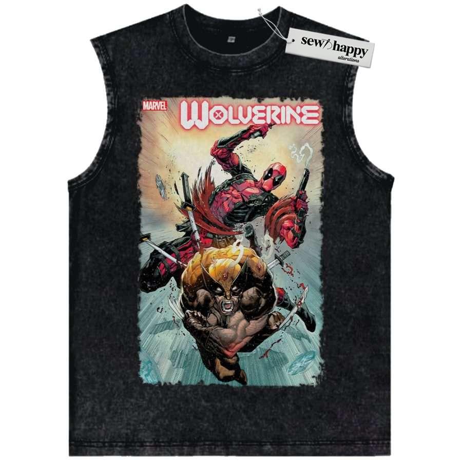 Wash Tank Top Deadpool Tank Top, Wolverine Tank Top, Marvel Comics Tank Top, Vintage Tank Top