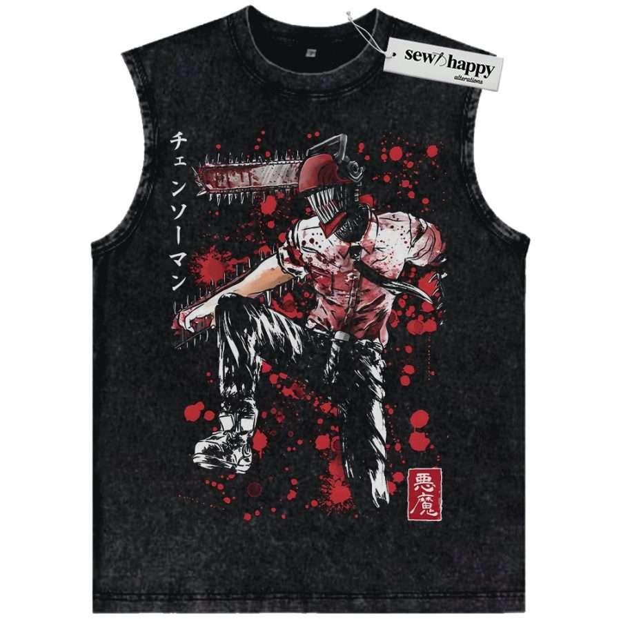 Wash Tank Top Denji Tank Top, Chainsaw Man Tank Top, Anime Tank Top, Vintage Tank Top