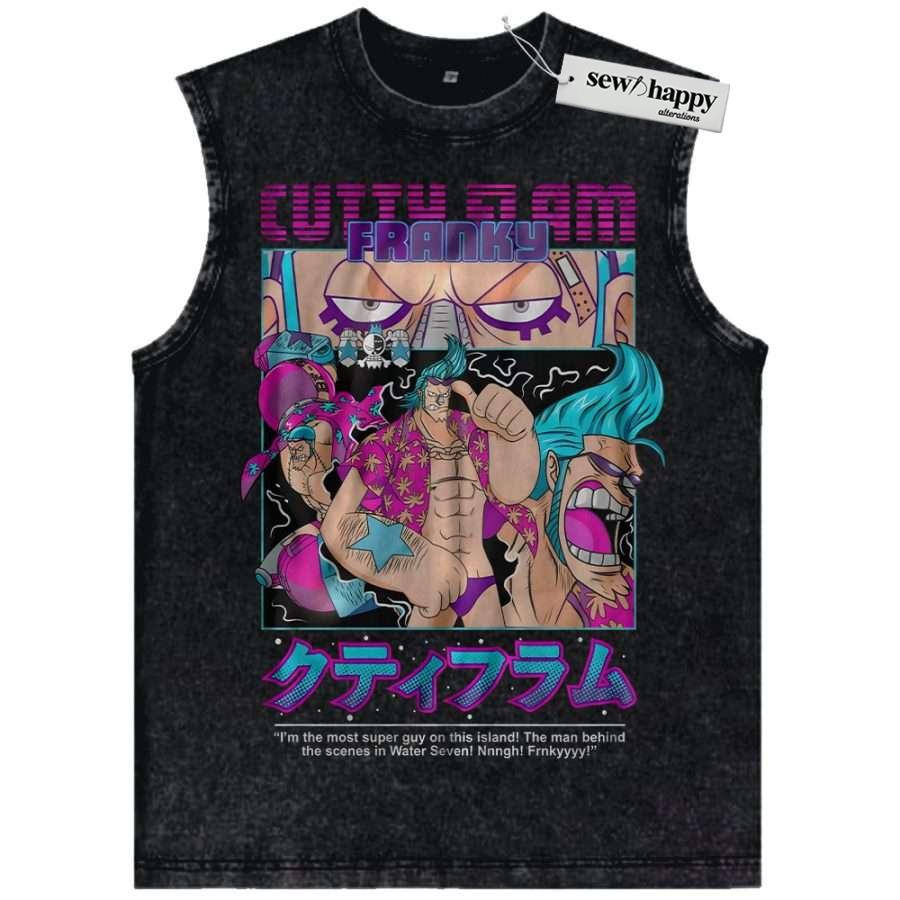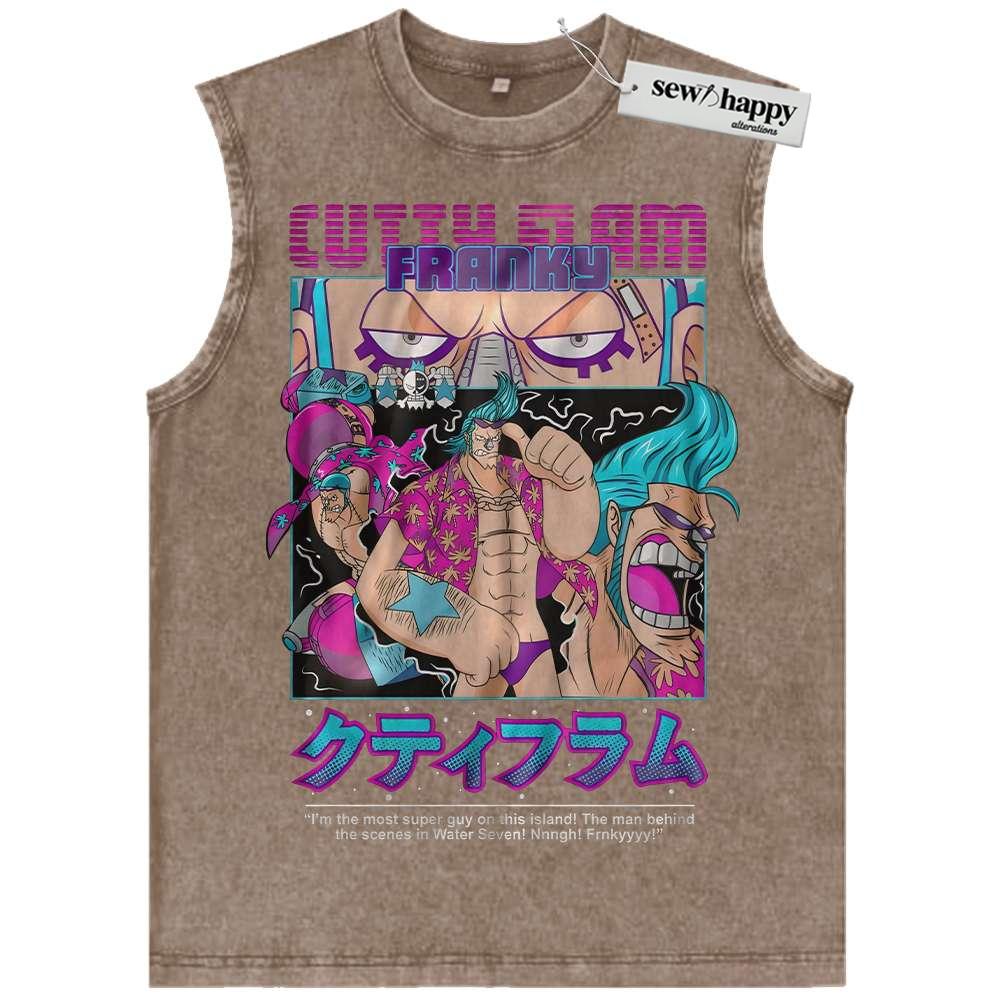 Wash Tank Top Franky Tank Top, One Piece Tank Top, Anime Tank Top, Vintage Tank Top