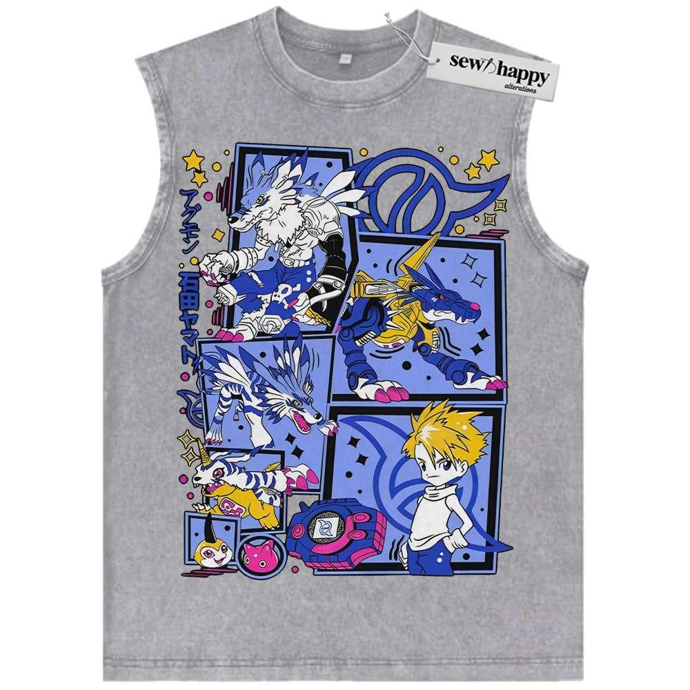 Wash Tank Top Gabumon Tank Top, Garurumon Tank Top, WereGarurumon Tank Top, MetalGarurumon Tank Top, Digimon Adventure Tank Top, Anime Tank Top, Vintage Tank Top