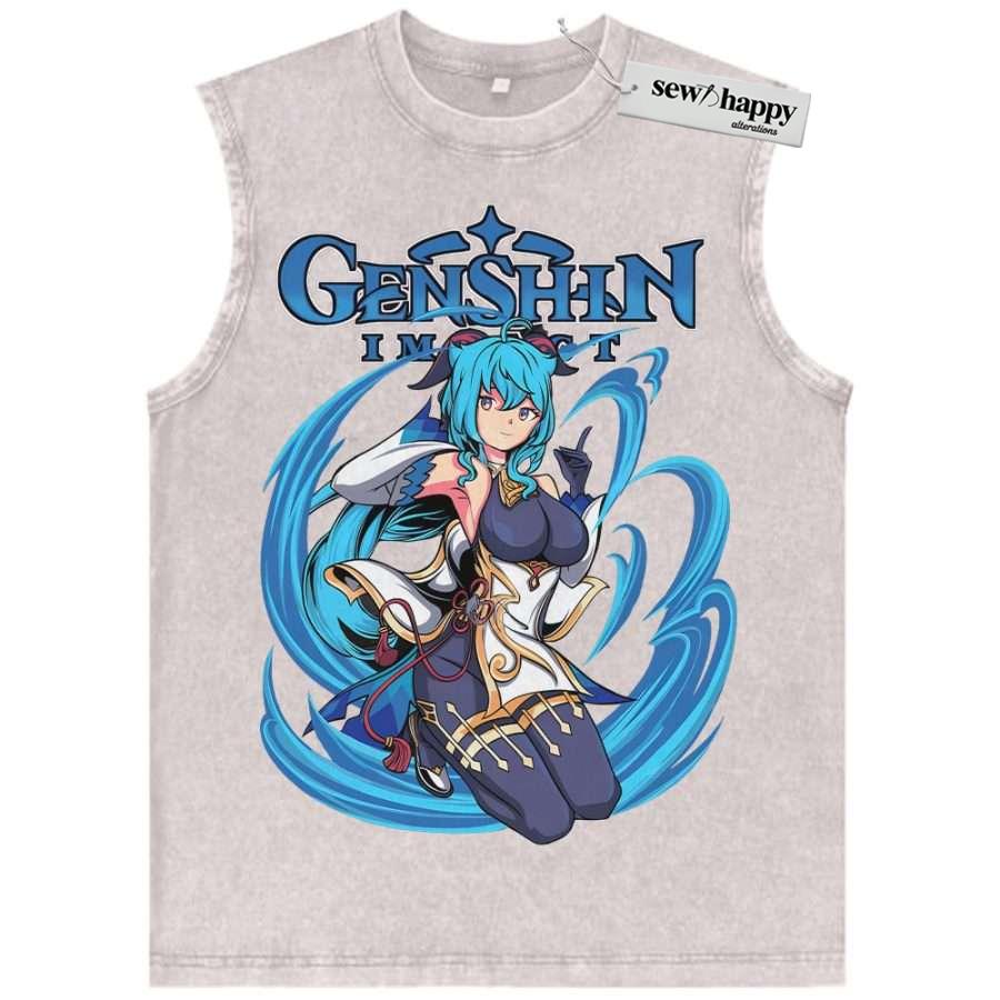 Wash Tank Top Ganyu Tank Top, Genshin Impact Tank Top, Game Tank Top, Vintage Tank Top