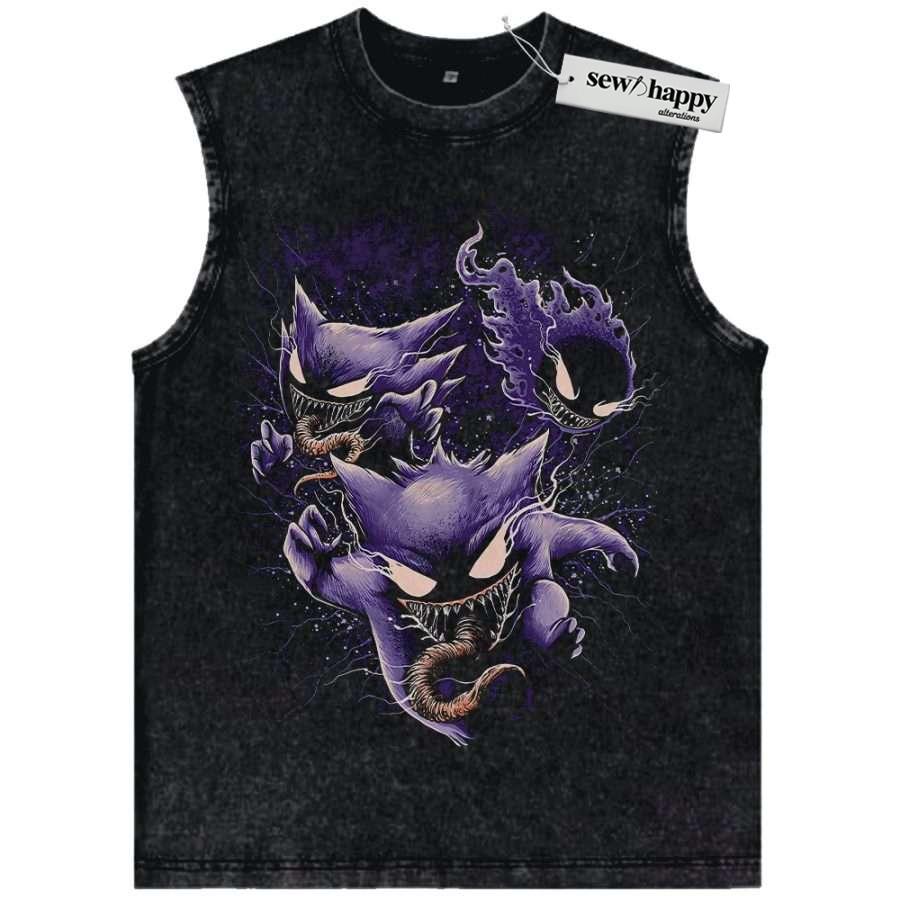 Wash Tank Top Gengar Gatsly vs Haunter Tank Top, Pokemon Tank Top, Anime Tank Top, Vintage Tank Top