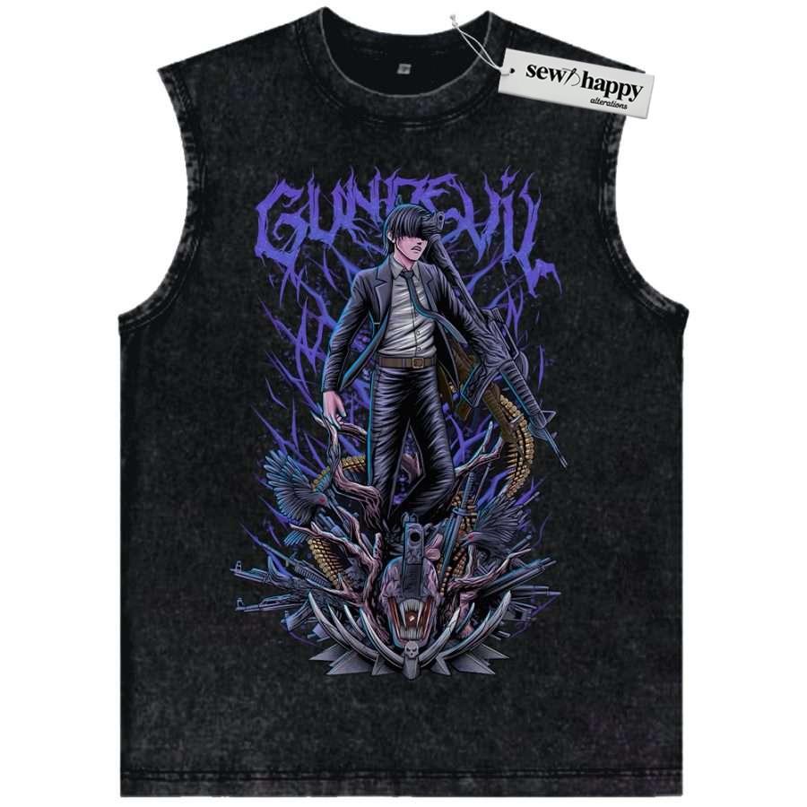 Wash Tank Top Gun Devil Tank Top, Chainsaw Man Tank Top, Anime Tank Top, Vintage Tank Top