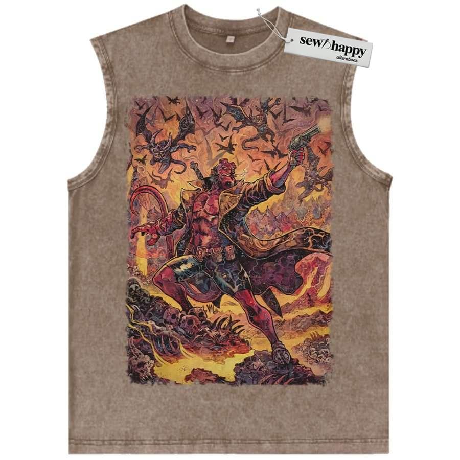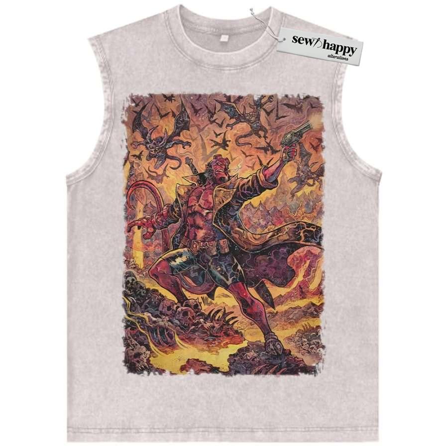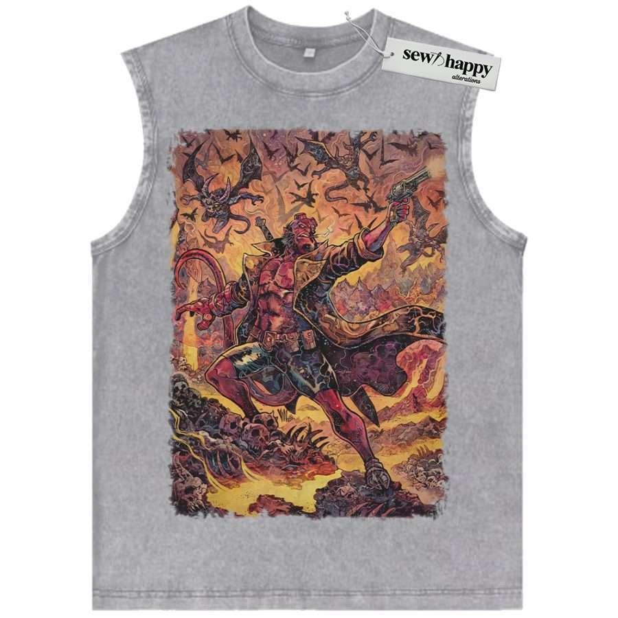 Wash Tank Top Hellboy Tank Top, Movie Tank Top, Vintage Tank Top