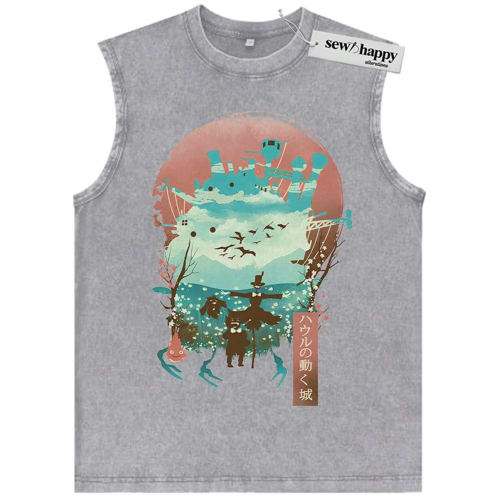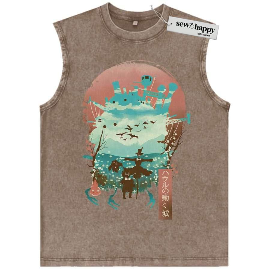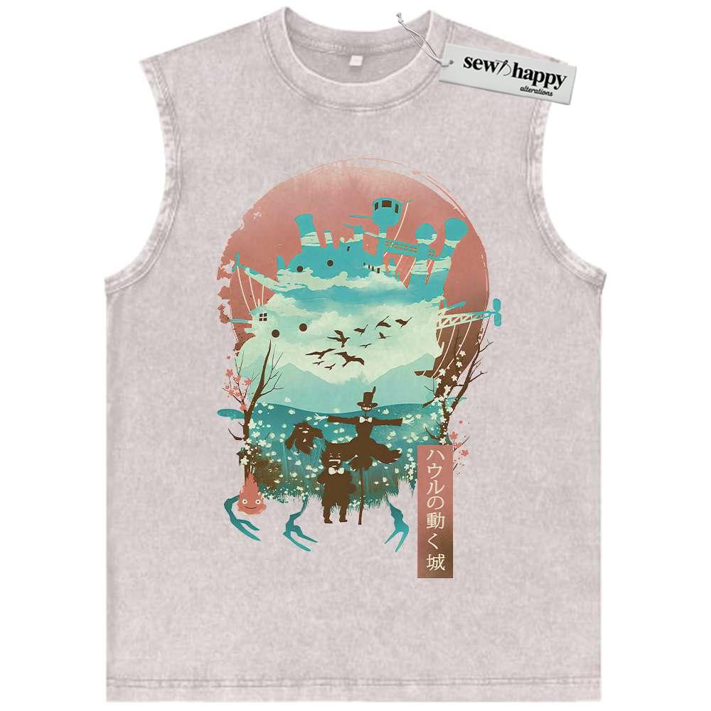 Wash Tank Top Howl’s Moving Castle Tank Top, Studio Ghibli Tank Top, Anime Tank Top, Vintage Tank Top