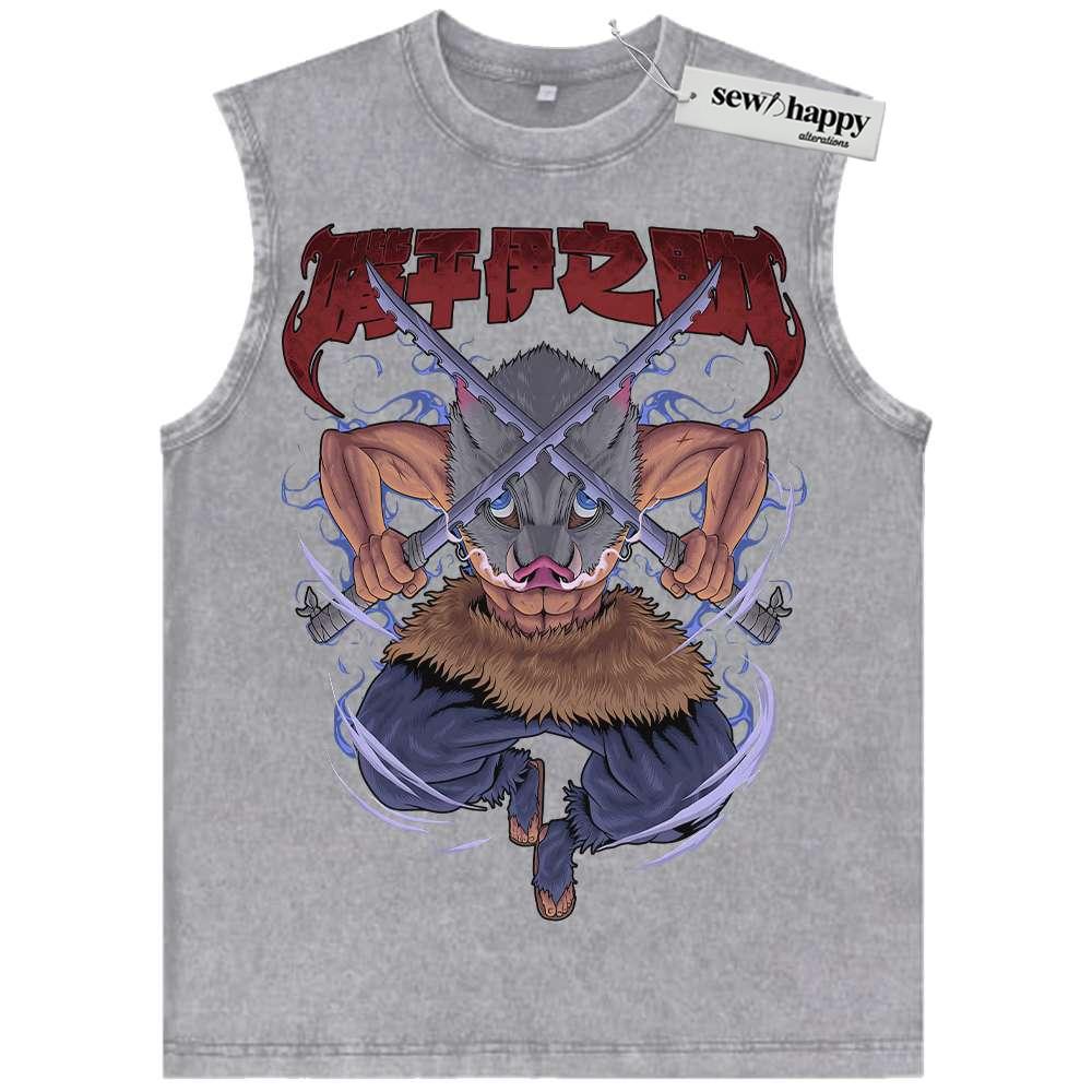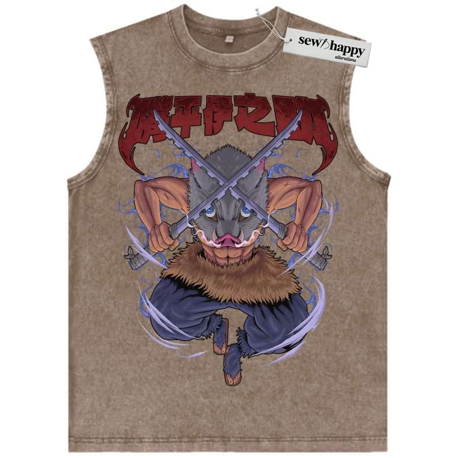 Wash Tank Top Inosuke Hashibira Tank Top, Demon Slayer Tank Top, Anime Tank Top, Vintage Tank Top
