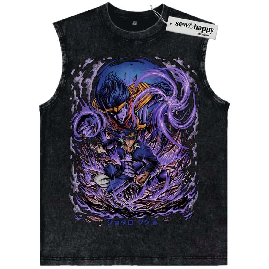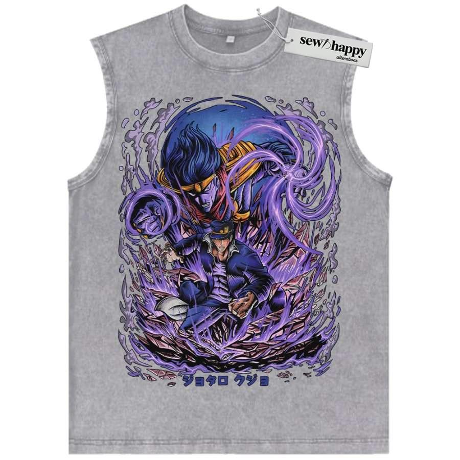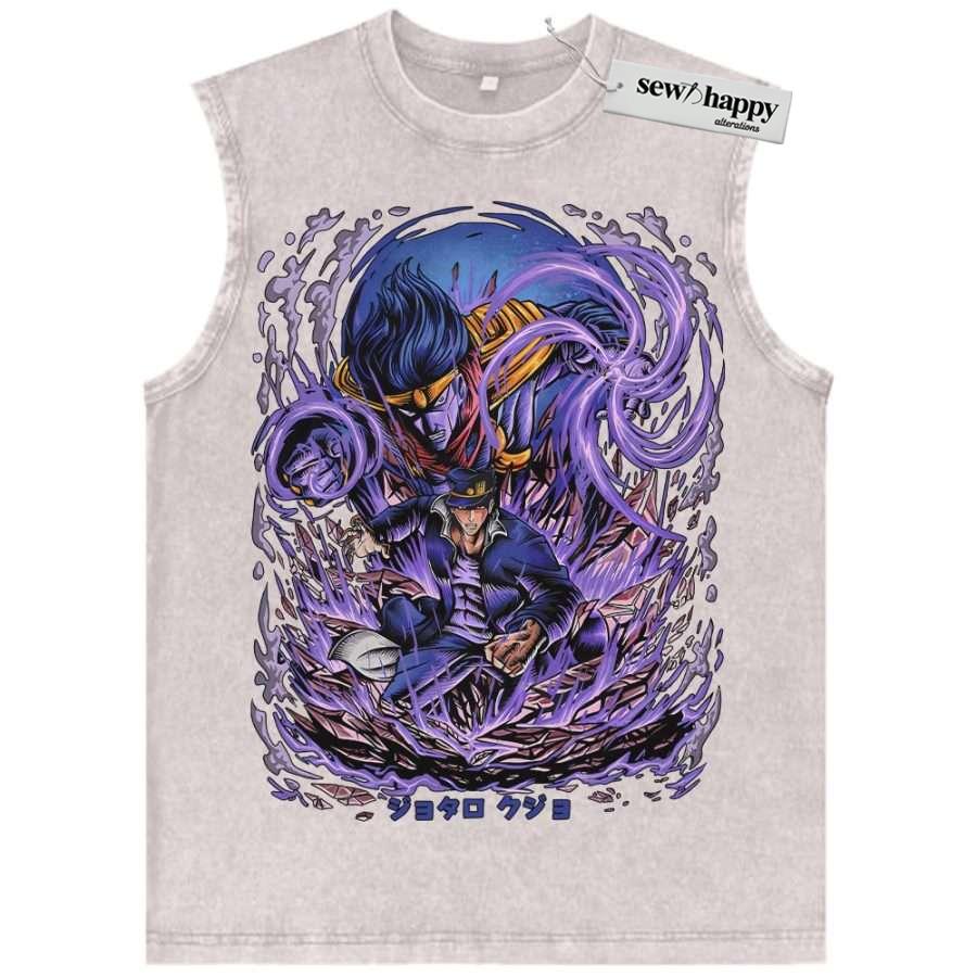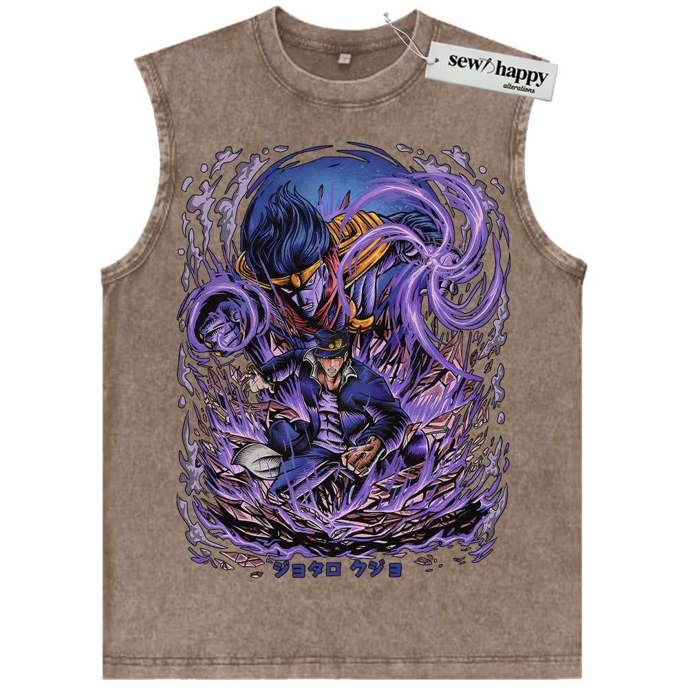 Wash Tank Top Jotaro Kujo Tank Top, JoJo’s Bizarre Adventure Tank Top, Anime Tank Top, Vintage Tank Top