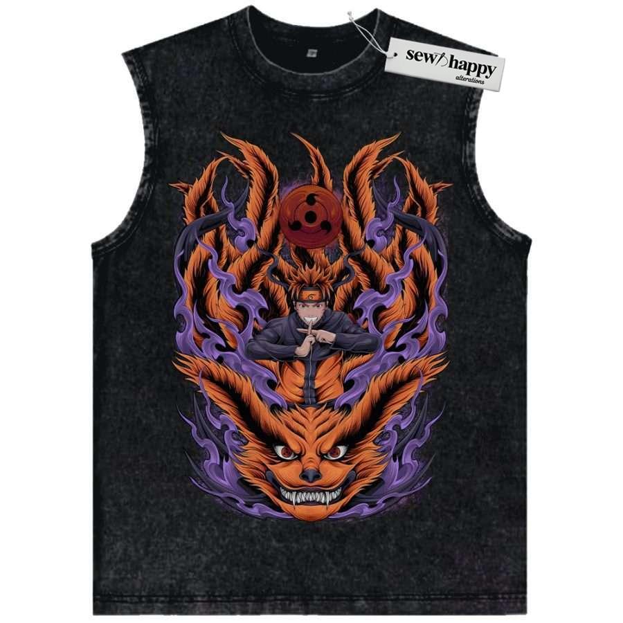 Wash Tank Top Kurama vs Naruto Uzumaki Tank Top, Anime Tank Top, Vintage Tank Top