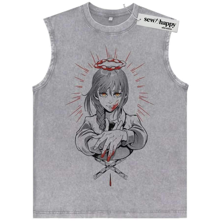 Wash Tank Top Makima Tank Top, Chainsaw Man Tank Top, Anime Tank Top, Vintage Tank Top