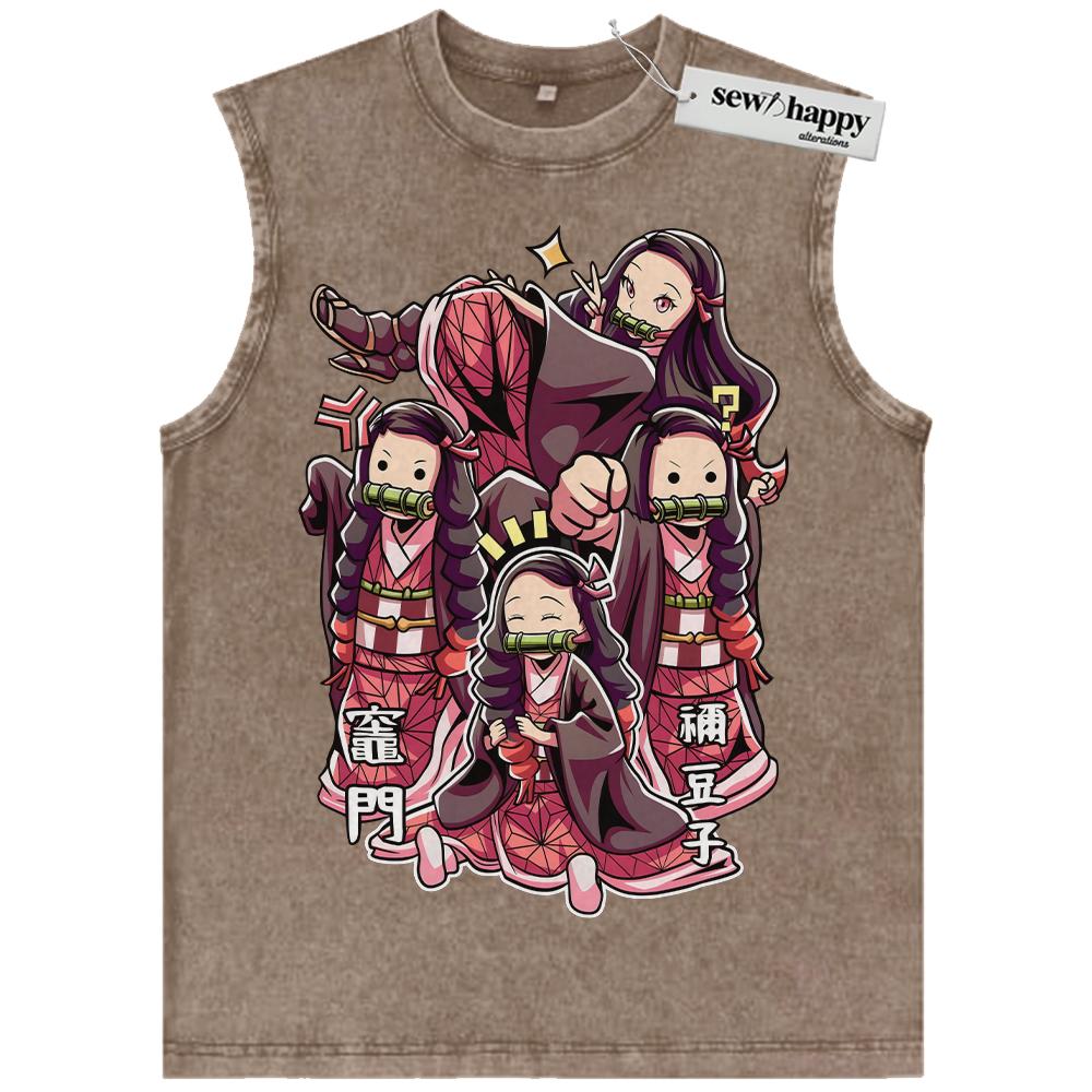 Wash Tank Top Nezuko Kamado Tank Top, Demon Slayer Tank Top, Anime Tank Top, Vintage Tank Top