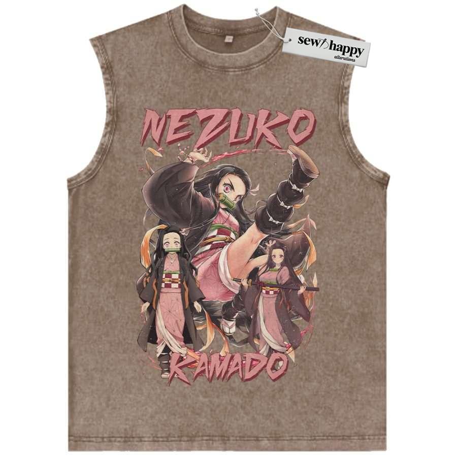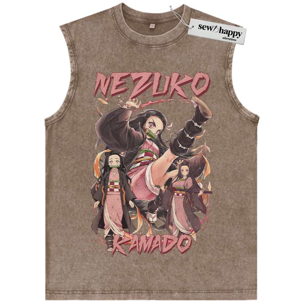 Wash Tank Top Nezuko Kamado Tank Top, Demon Slayer Tank Top, Anime Tank Top, Vintage Tank Top