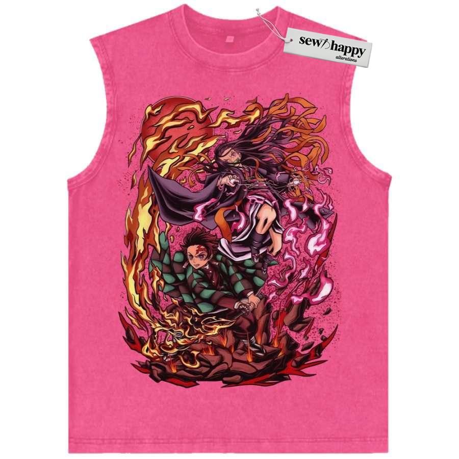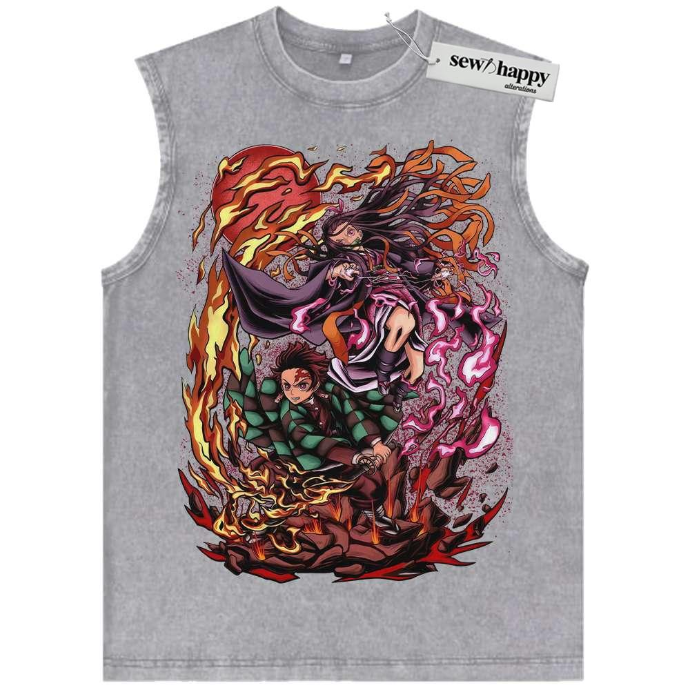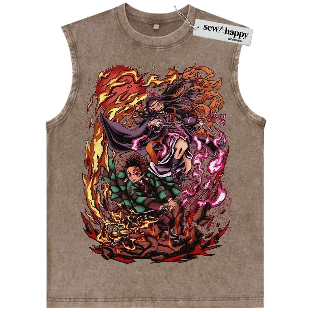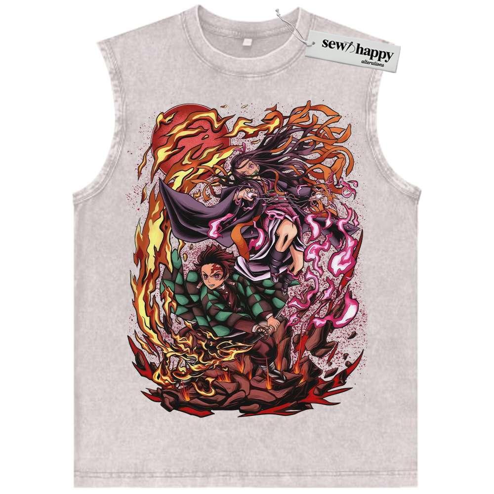 Wash Tank Top Nezuko vs Tanjiro Kamado Tank Top, Demon Slayer Tank Top, Anime Tank Top, Vintage Tank Top