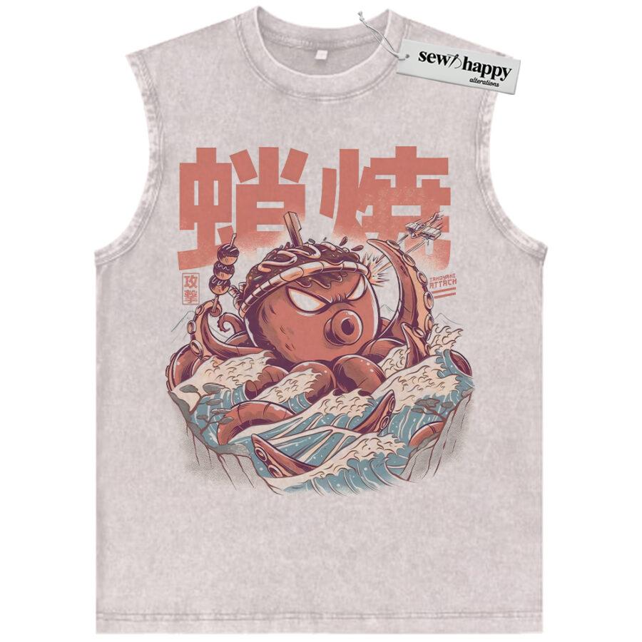 Wash Tank Top Octopus Kaiju Tank Top, Japanese Streetwear Tank Top, Vintage Tank Top