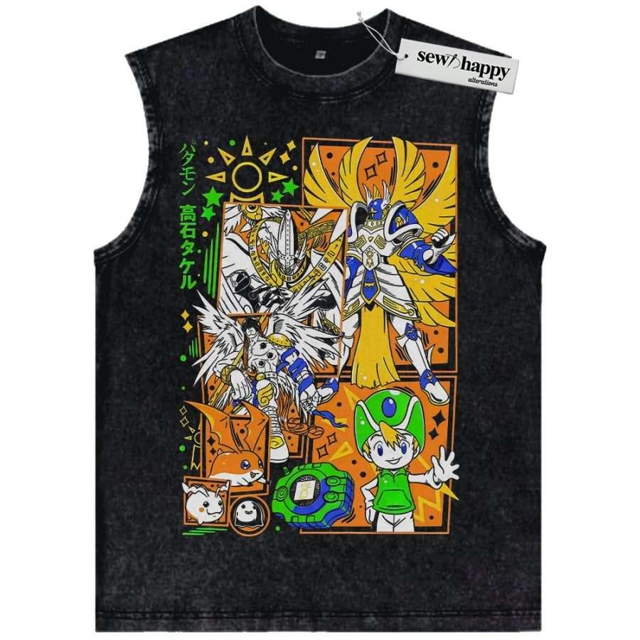 Wash Tank Top Patamon Tank Top, Angemon Tank Top, MagnaAngemon Tank Top, Takeru Takaishi Tank Top, Digimon Adventure Tank Top, Anime Tank Top, Vintage Tank Top