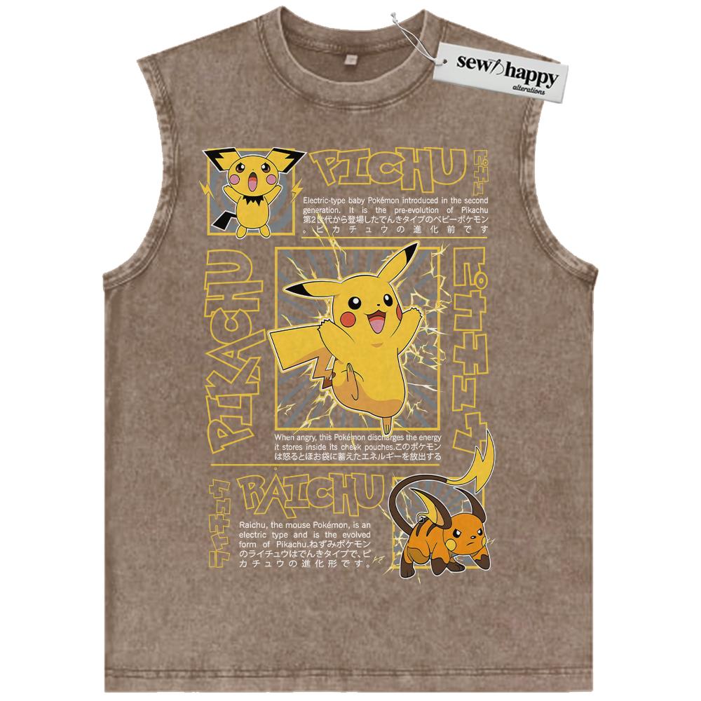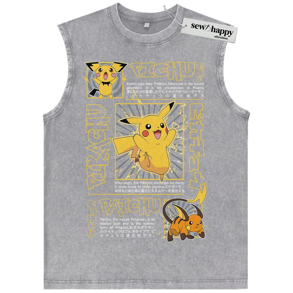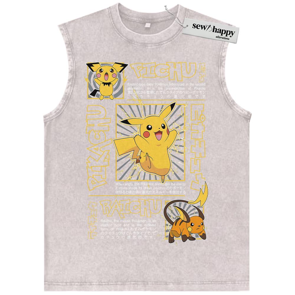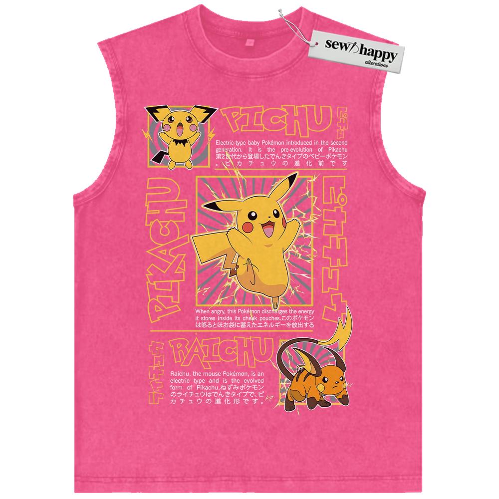 Wash Tank Top Pikachu Tank Top, Raichu Tank Top, Pichu Tank Top, Pokemon Tank Top, Anime Tank Top, Vintage Tank Top