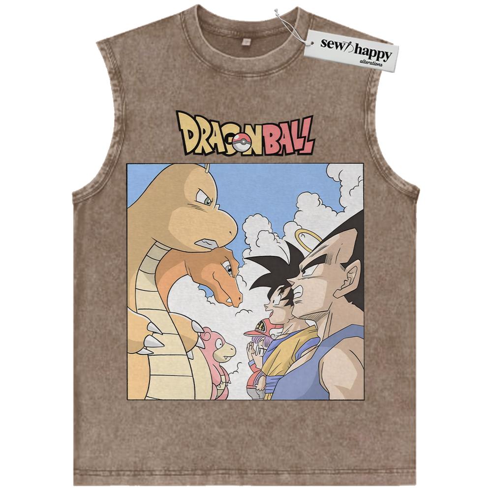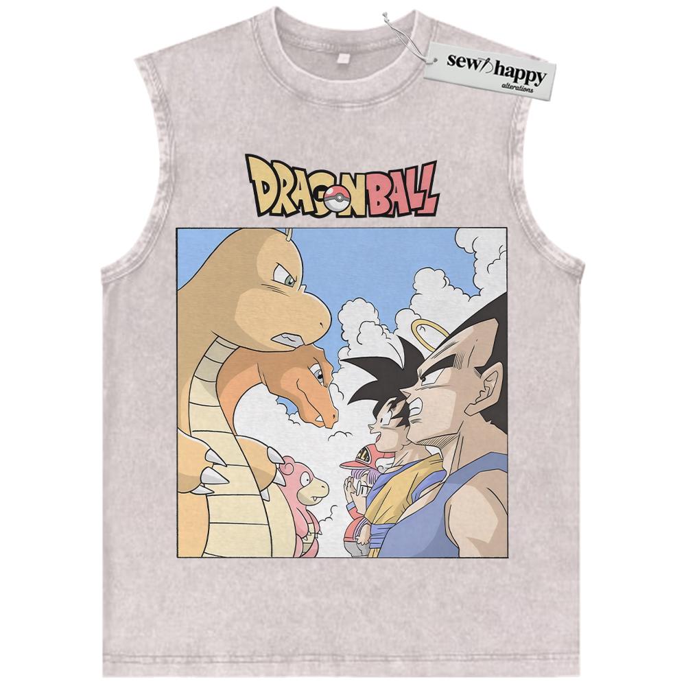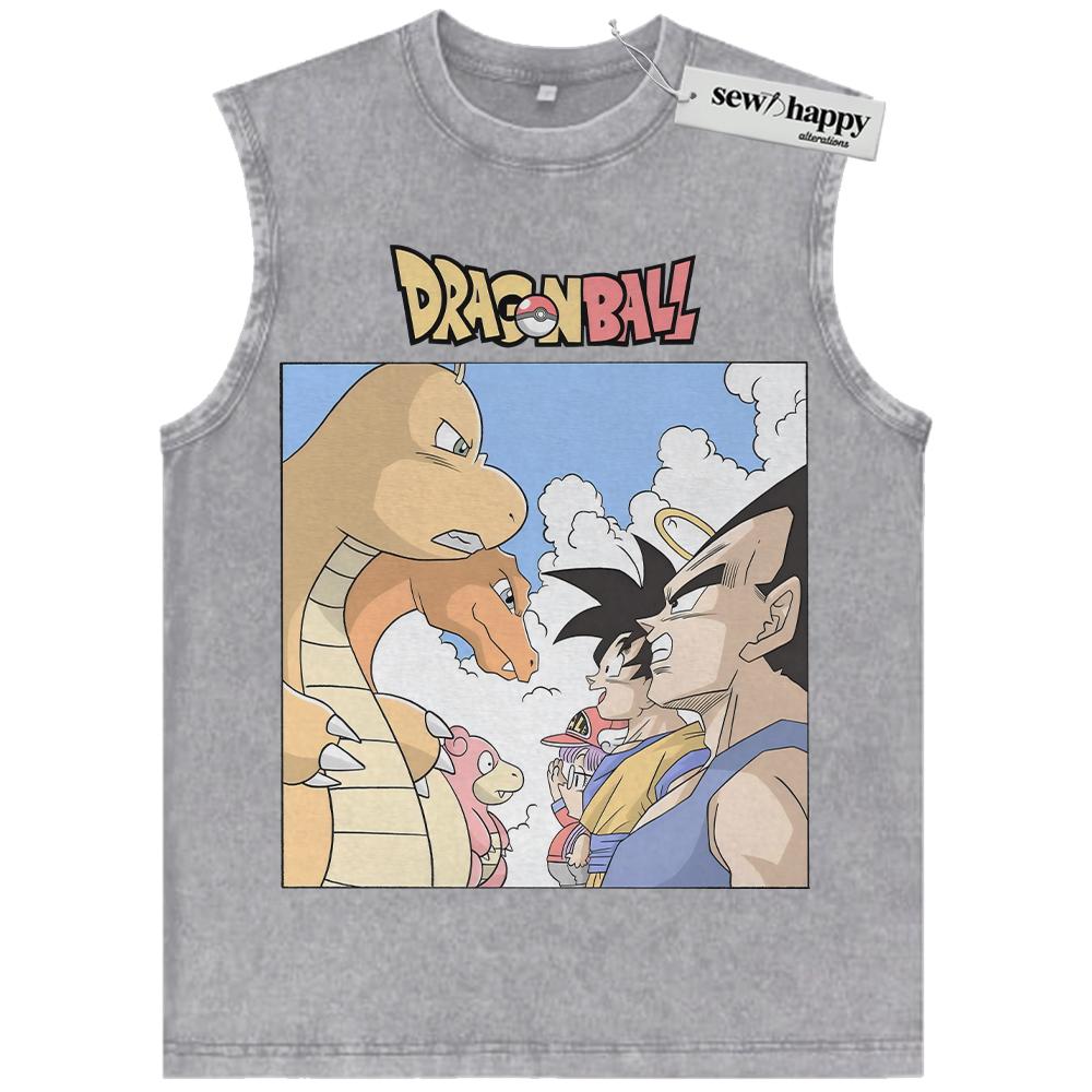 Wash Tank Top Pokemon x Dragon Ball Tank Top, Anime Tank Top, Vintage Tank Top