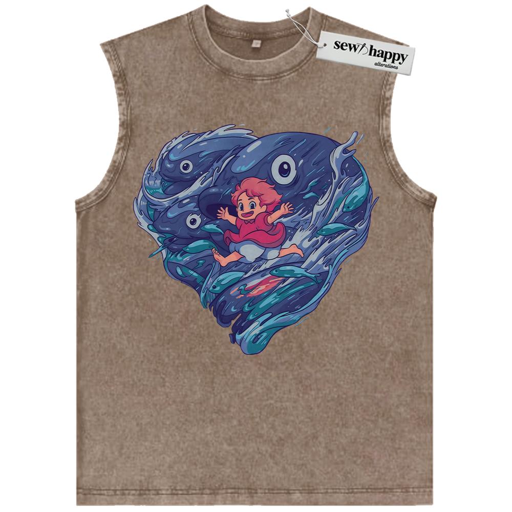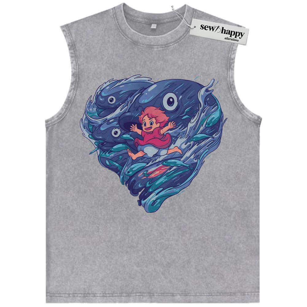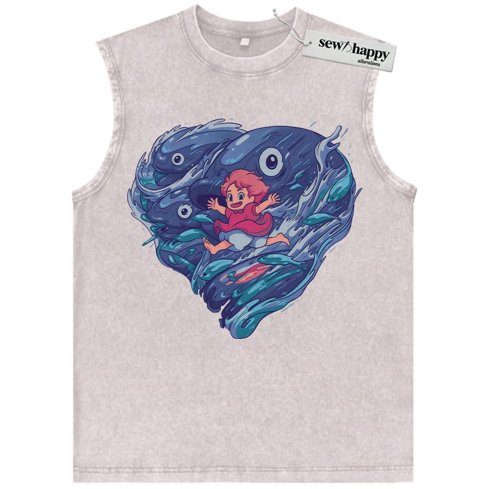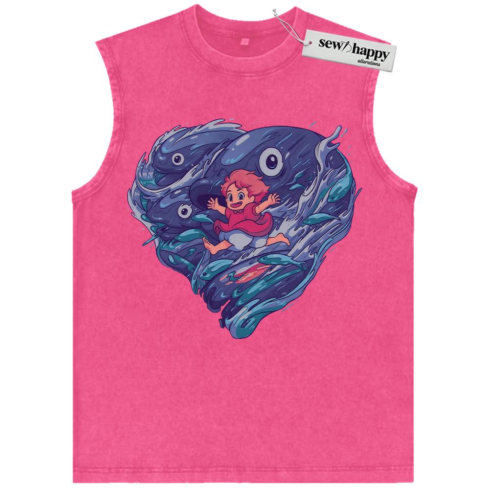 Wash Tank Top Ponyo Tank Top, Studio Ghibli Tank Top, Anime Tank Top, Vintage Tank Top