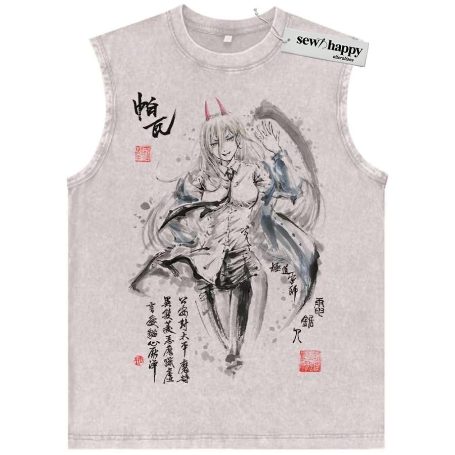 Wash Tank Top Power Tank Top, Chainsaw Man Tank Top, Anime Tank Top, Vintage Tank Top