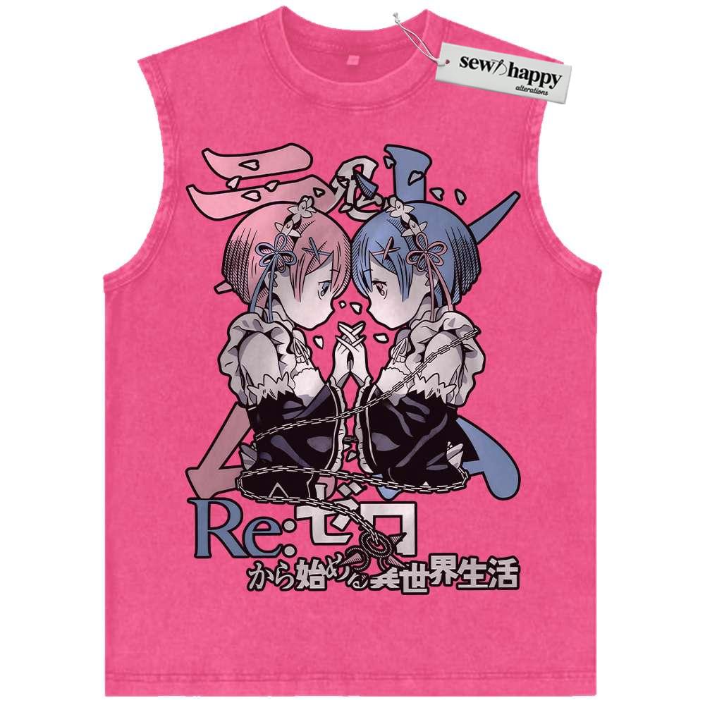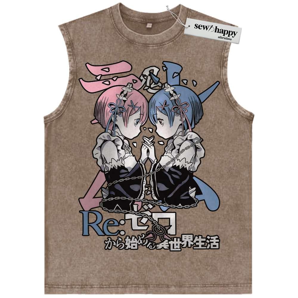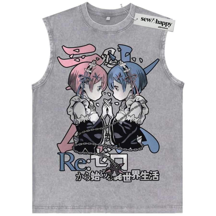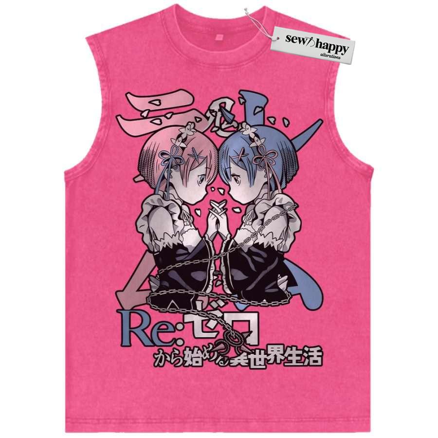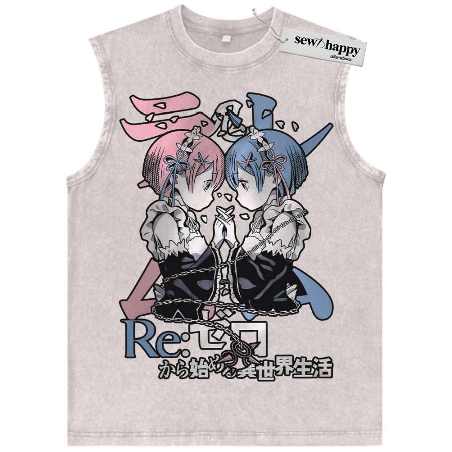 Wash Tank Top Rem vs Ram Tank Top, Re:Zero Tank Top, Anime Tank Top, Vintage Tank Top