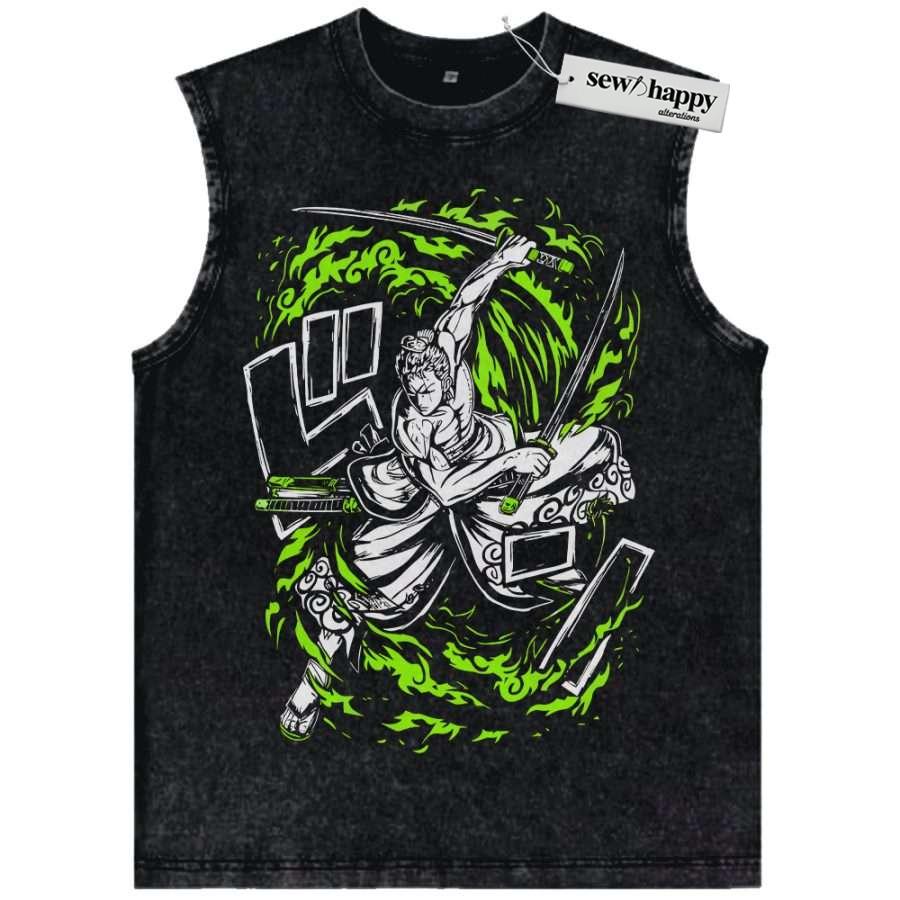Wash Tank Top Roronoa Zoro Tank Top, One Piece Tank Top, Anime Tank Top, Vintage Tank Top