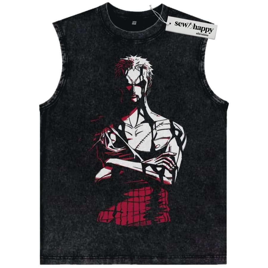 Wash Tank Top Roronoa Zoro Tank Top, One Piece Tank Top, Anime Tank Top, Vintage Tank Top