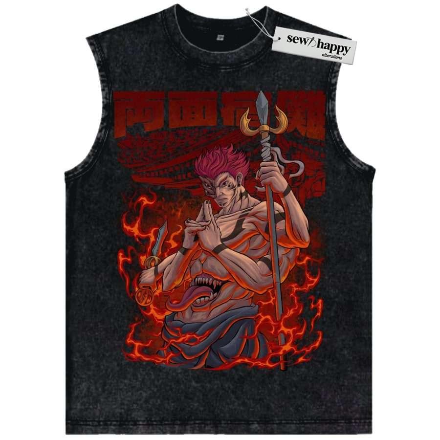 Wash Tank Top Ryomen Sukuna Tank Top, Jujutsu Kaisen Tank Top, Anime Tank Top, Vintage Tank Top