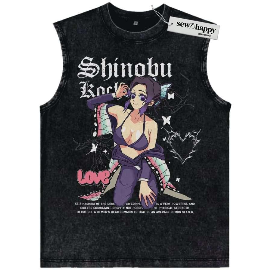 Wash Tank Top Shinobu Kocho Tank Top, Demon Slayer Tank Top, Anime Tank Top, Vintage Tank Top