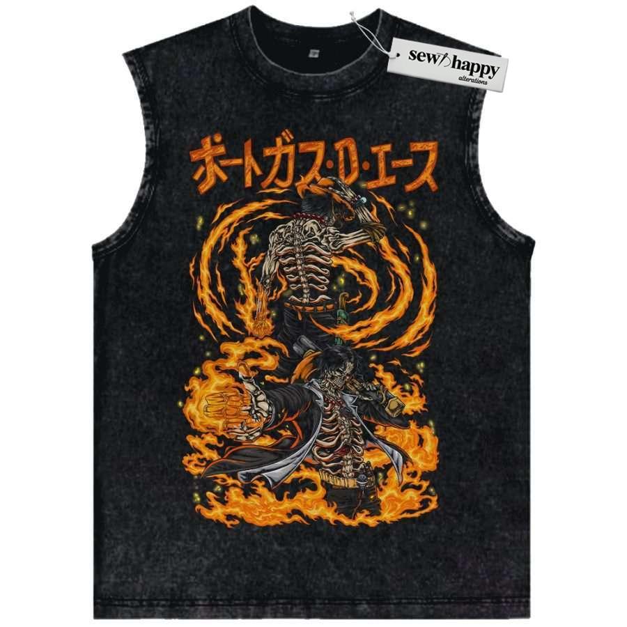 Wash Tank Top Skeleton Portgas D Ace Tank Top, One Piece Tank Top, Anime Tank Top, Vintage Tank Top
