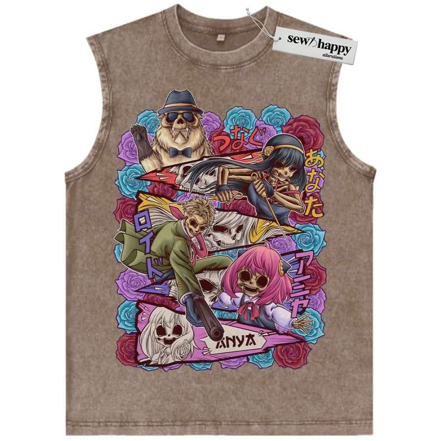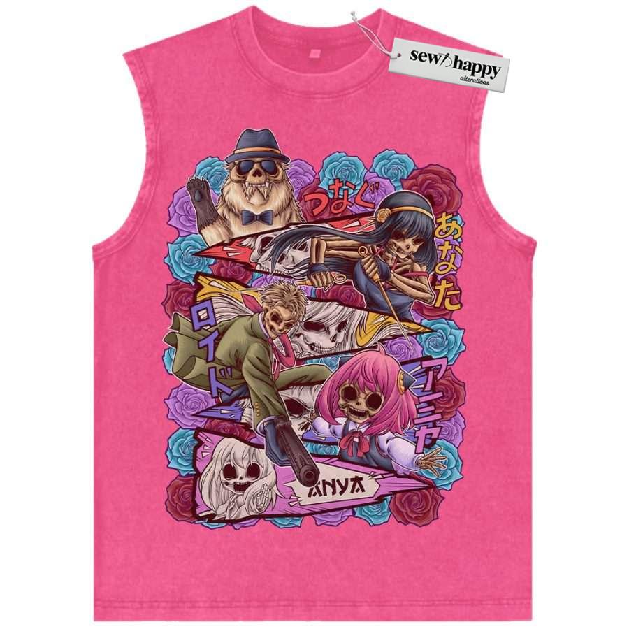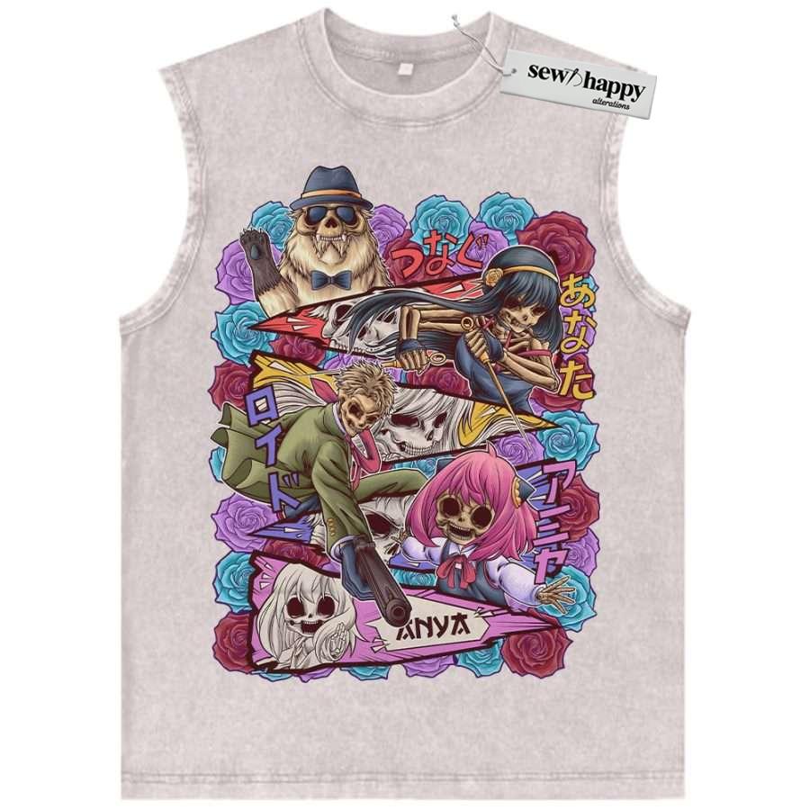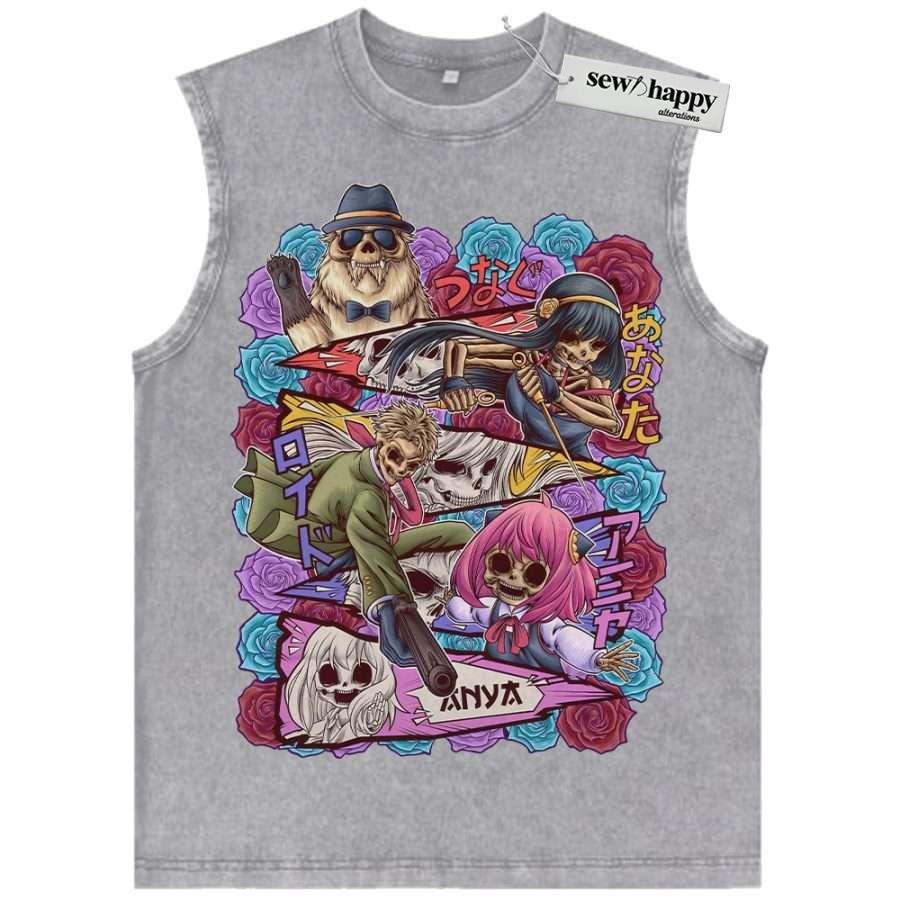 Wash Tank Top Skull Spy x Family Tank Top, Anime Tank Top, Vintage Tank Top