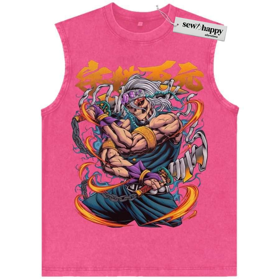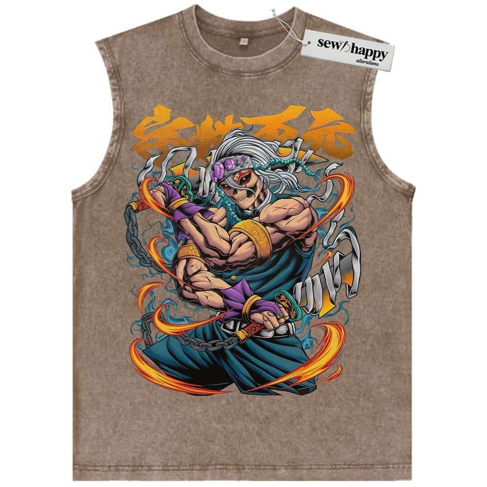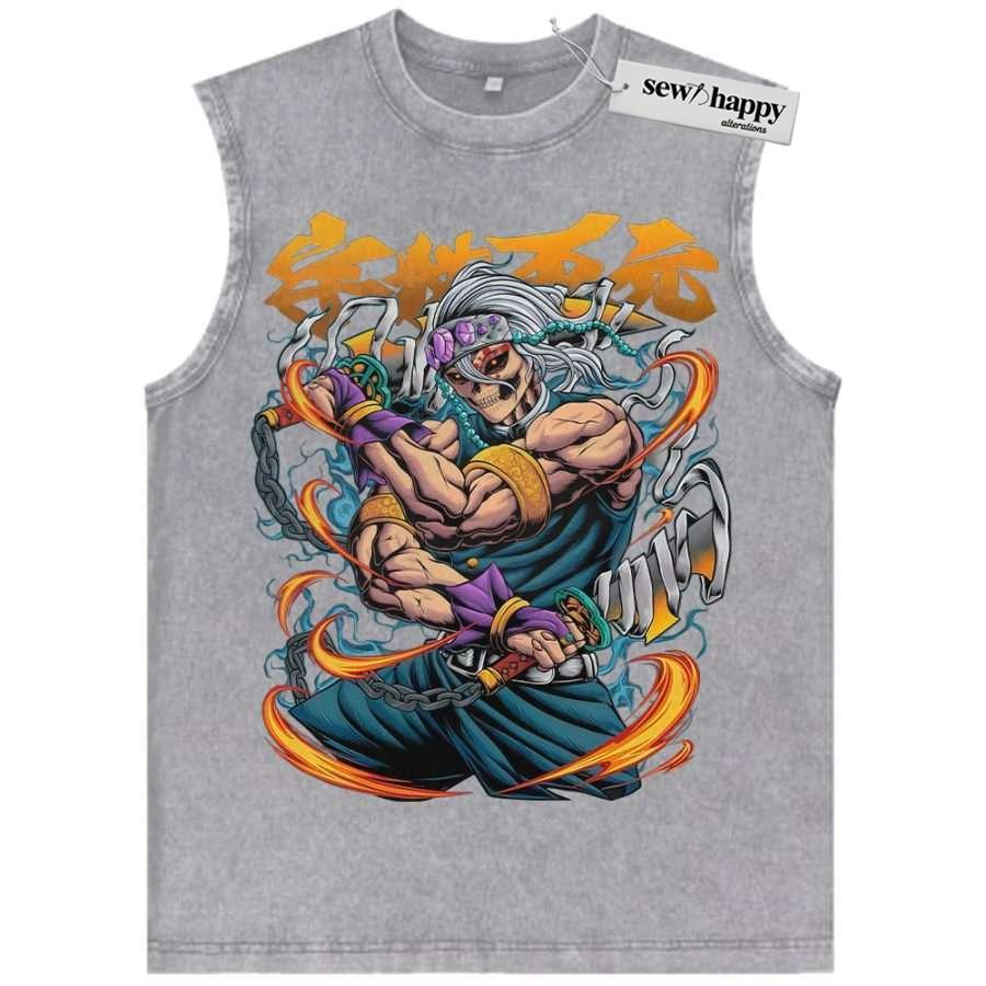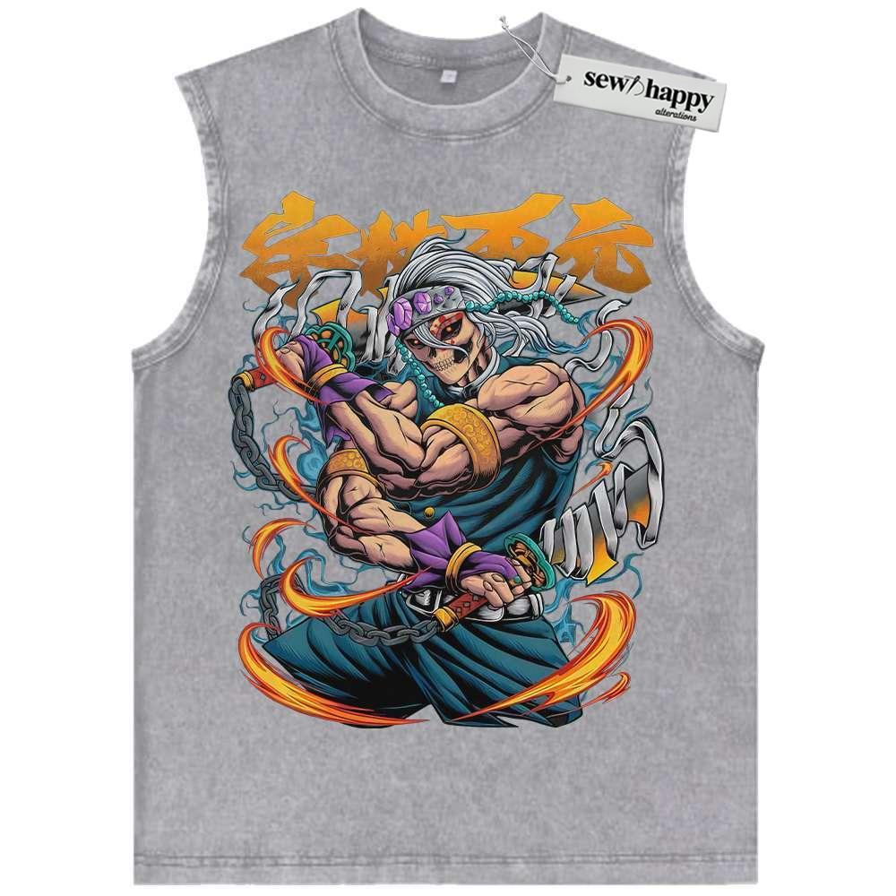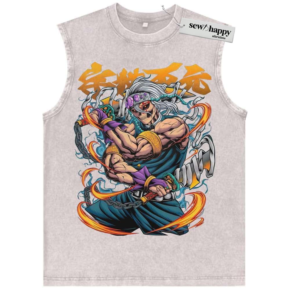 Wash Tank Top Skull Tengen Uzui Tank Top, Demon Slayer Tank Top, Anime Tank Top, Vintage Tank Top