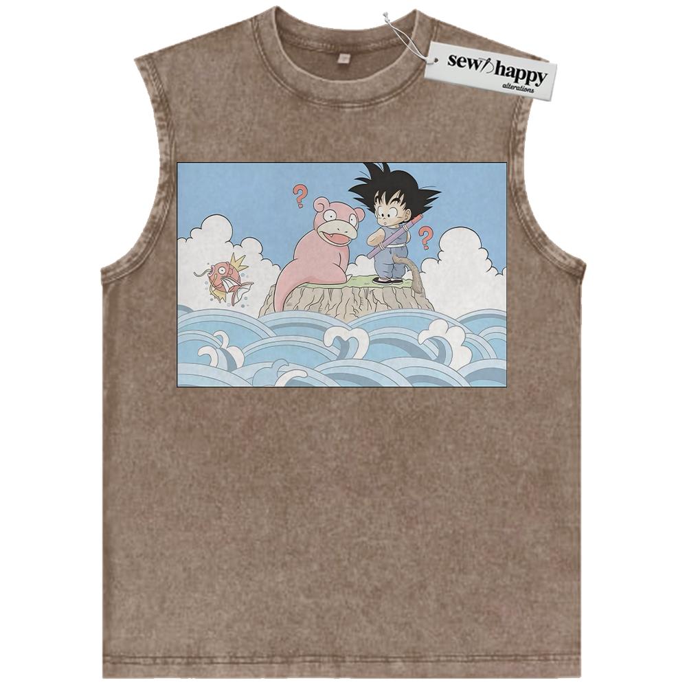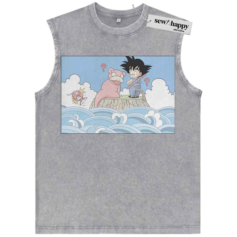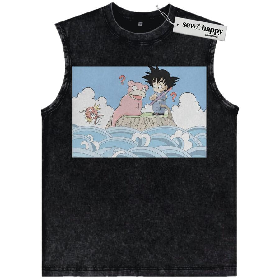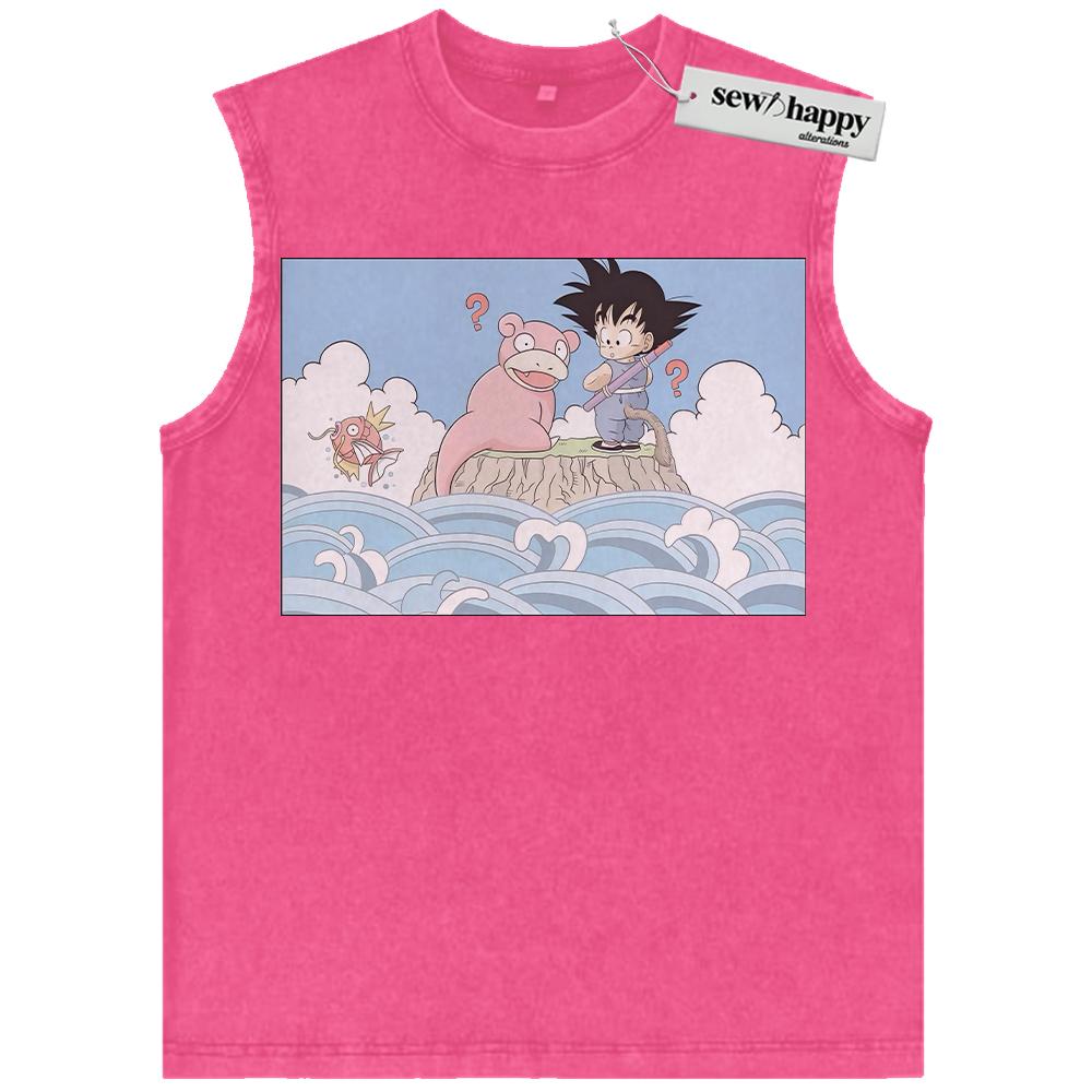 Wash Tank Top Slowpoke Tank Top, Magikarp and Son Goku Tank Top, Dragon Ball Tank Top, Pokemon Tank Top, Anime Tank Top, Vintage Tank Top