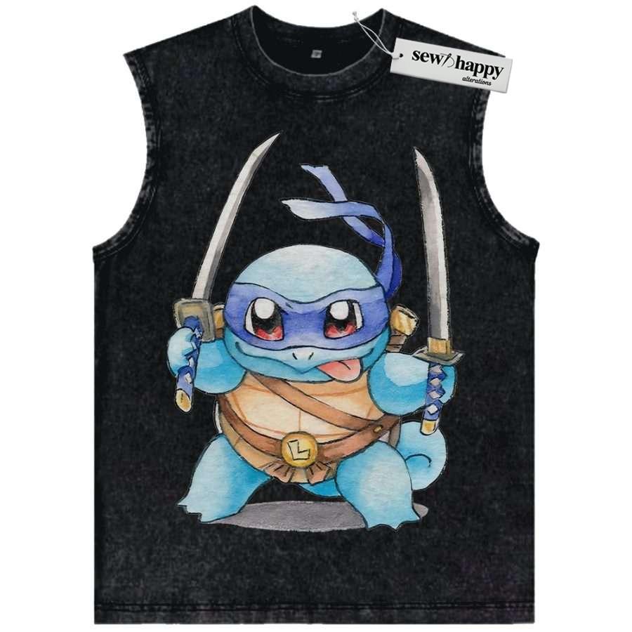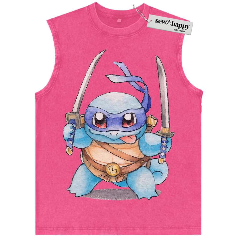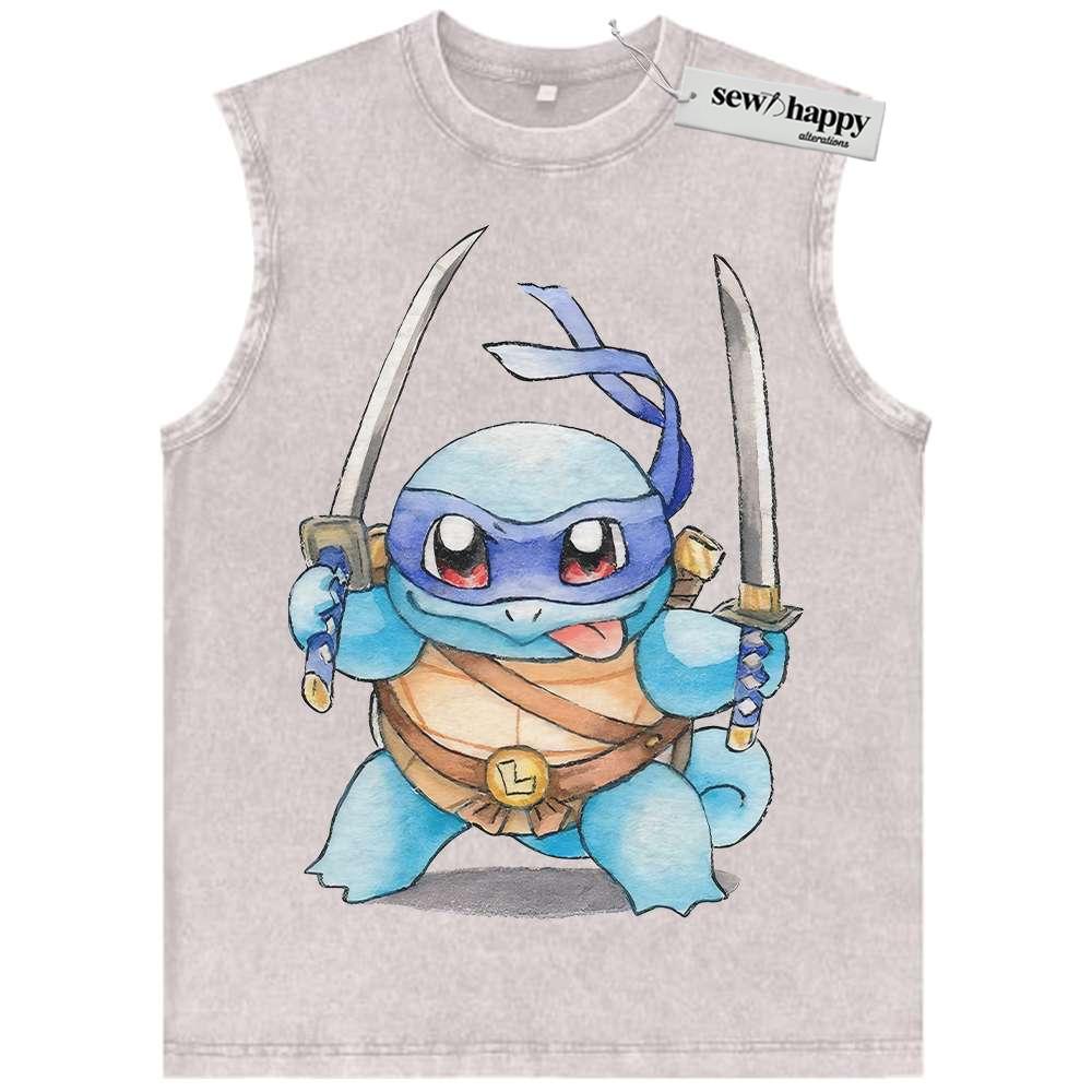 Squirtle x Leonardo Tank Top, Pokemon Tank Top, Anime Tank Top, Vintage Tank Top