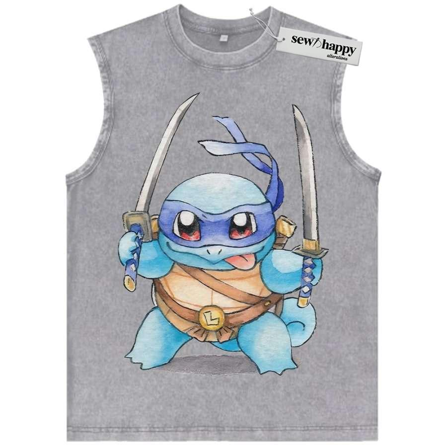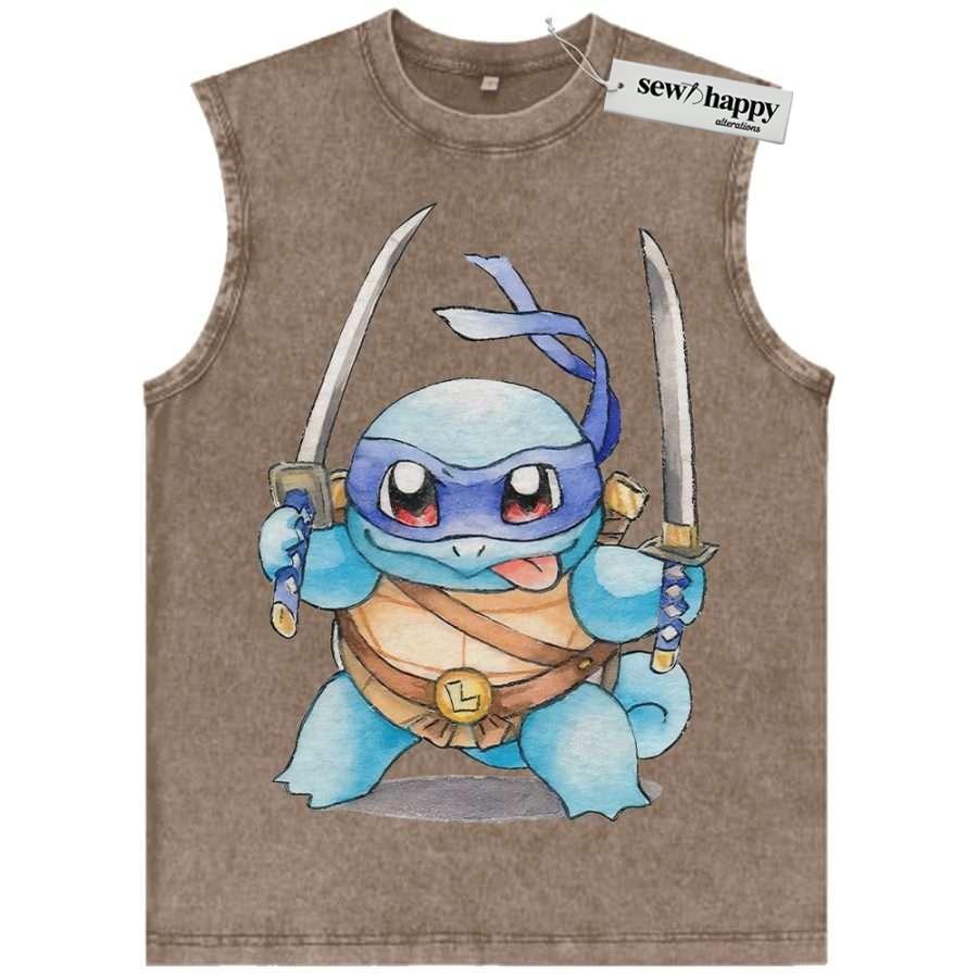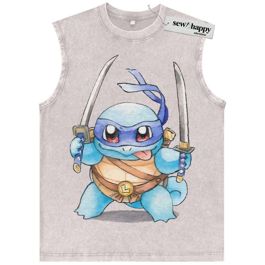 Wash Tank Top Squirtle x Leonardo Tank Top, Pokemon Tank Top, Anime Tank Top, Vintage Tank Top