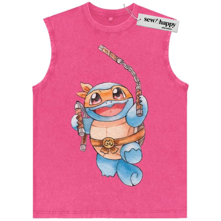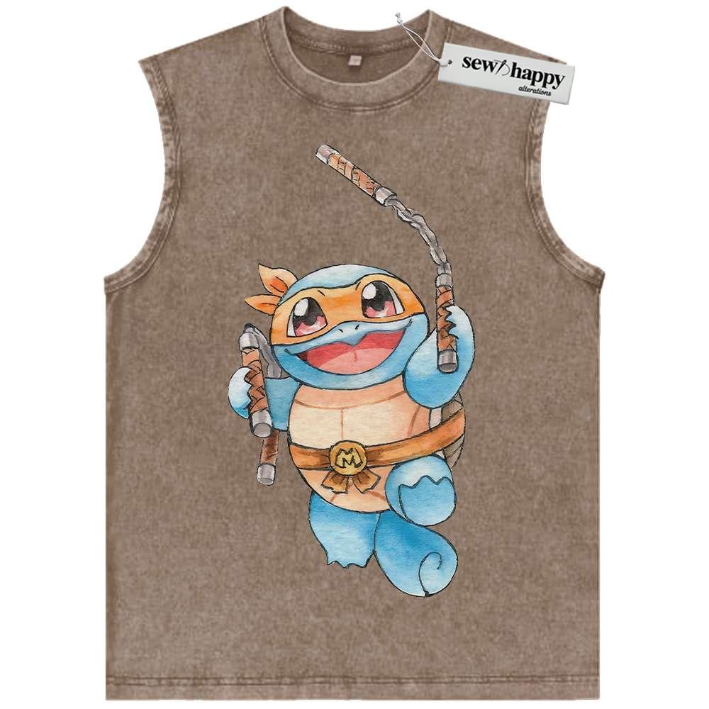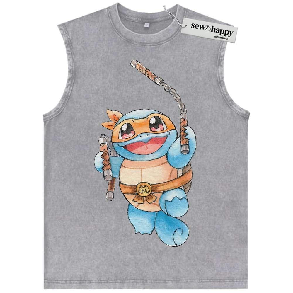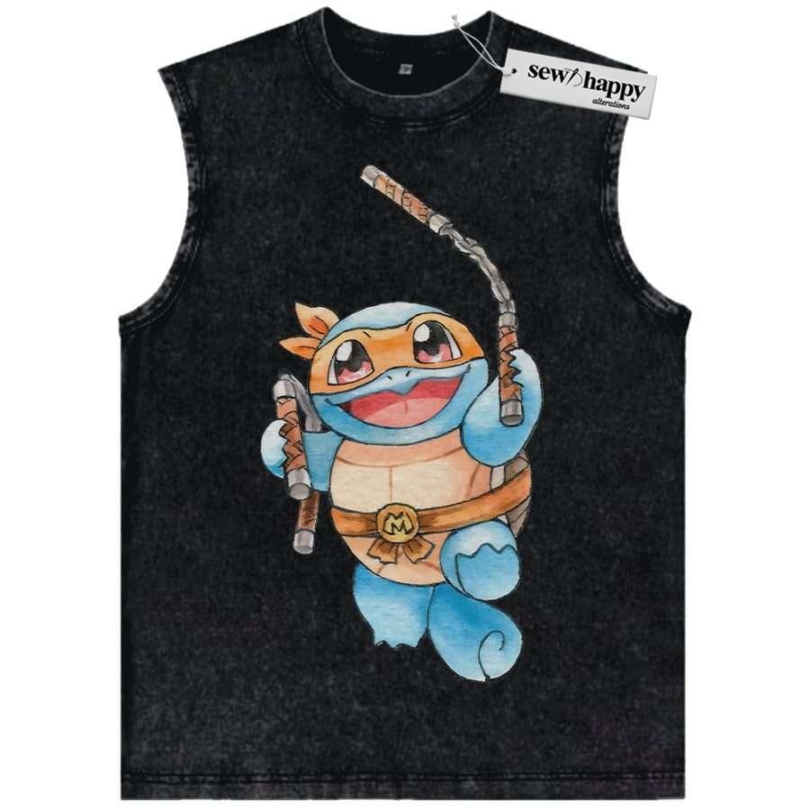 Wash Tank Top Squirtle x Michelangelo Tank Top, Tank Top, Pokemon Tank Top, Anime Tank Top, Vintage Tank Top