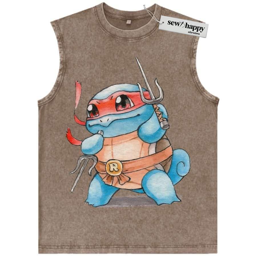 Wash Tank Top Squirtle x Raphael Tank Top, Pokemon Tank Top, Anime Tank Top, Vintage Tank Top