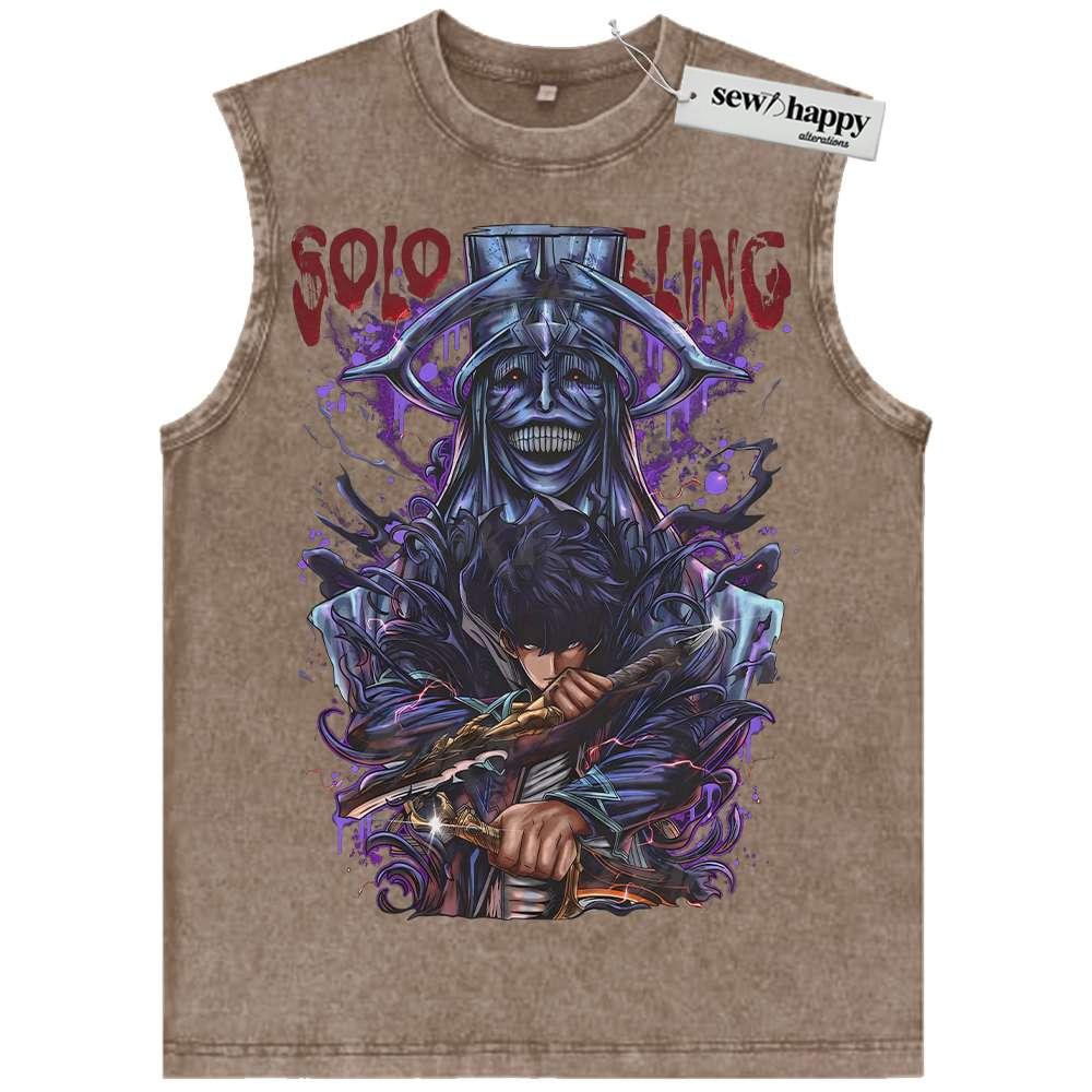Wash Tank Top Sung Jinwoo Tank Top, Statue of God Tank Top, Solo Leveling Tank Top, Anime Tank Top, Vintage Tank Top