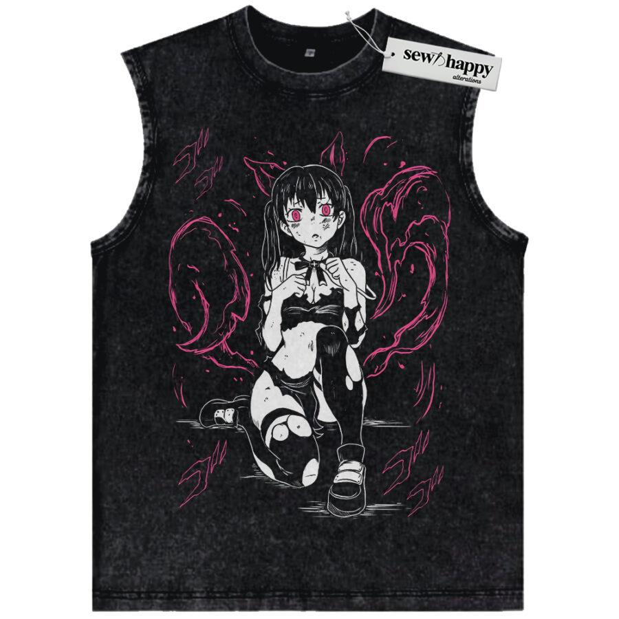 Wash Tank Top Reze and Makima Tank Top, Chainsaw Man Tank Top, Anime Tank Top, Vintage Tank Top