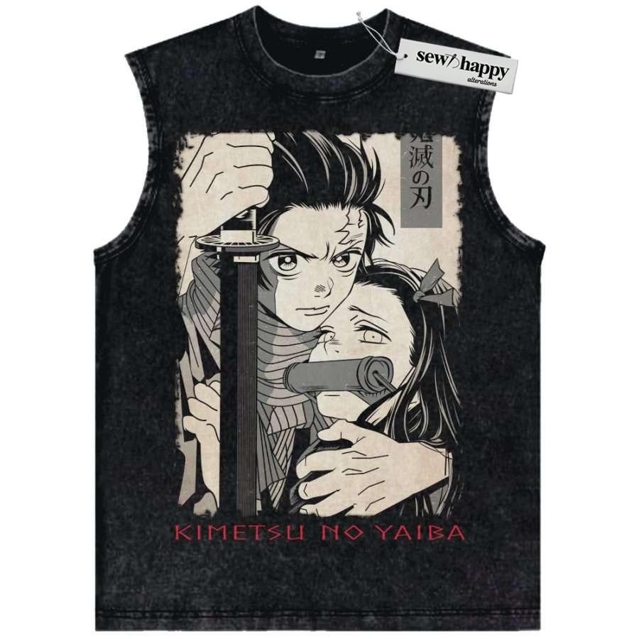 Wash Tank Top Tanjiro and Nezuko Tank Top, Demon Slayer Tank Top, Anime Tank Top, Vintage Tank Top