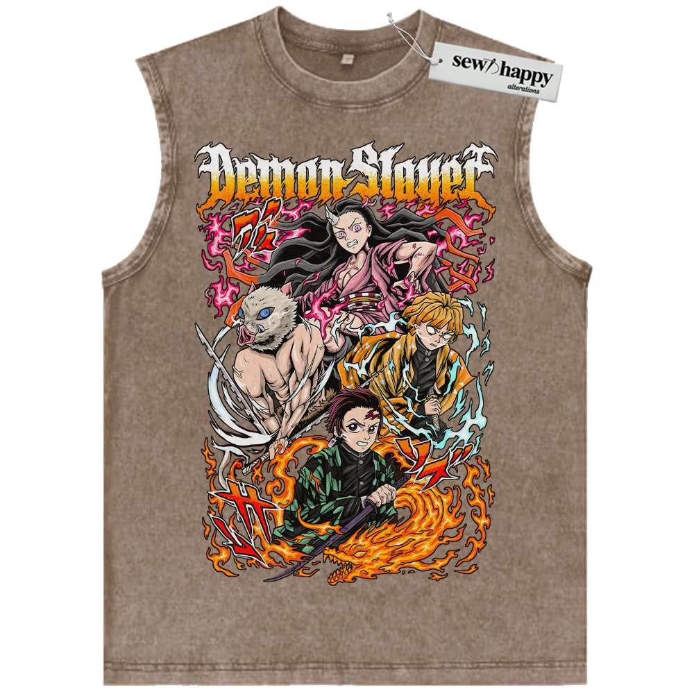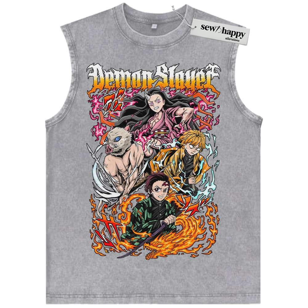 Wash Tank Top Tanjiro Tank Top, Nezuko Tank Top, Inosuke Tank Top, Zenitsu Tank Top, Demon Slayer Tank Top, Anime Tank Top, Vintage Tank Top