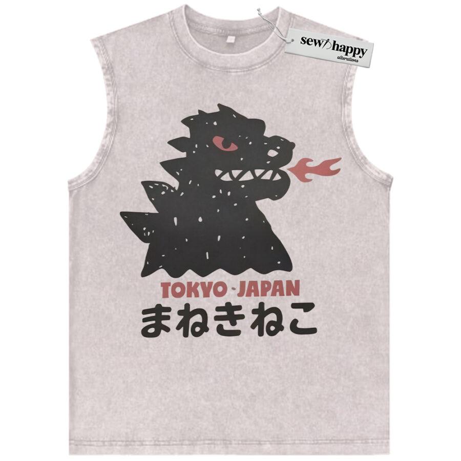 Wash Tank Top Tokyo Japan Kaiju Tank Top, Japanese Streetwear Tank Top, Vintage Tank Top