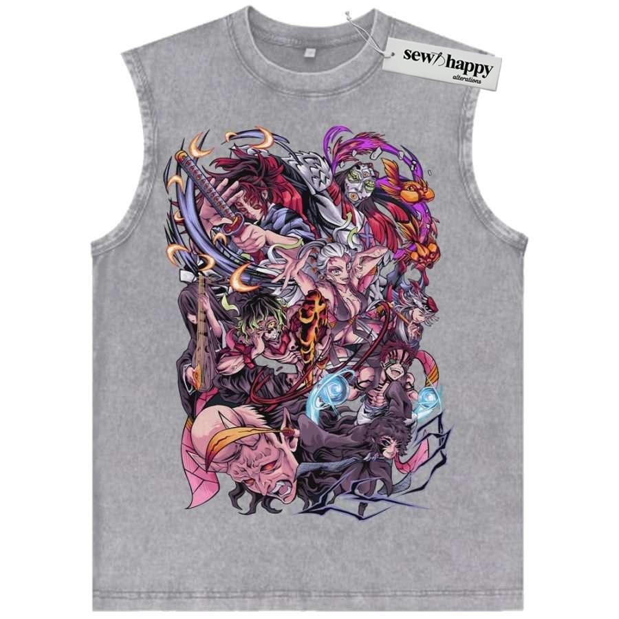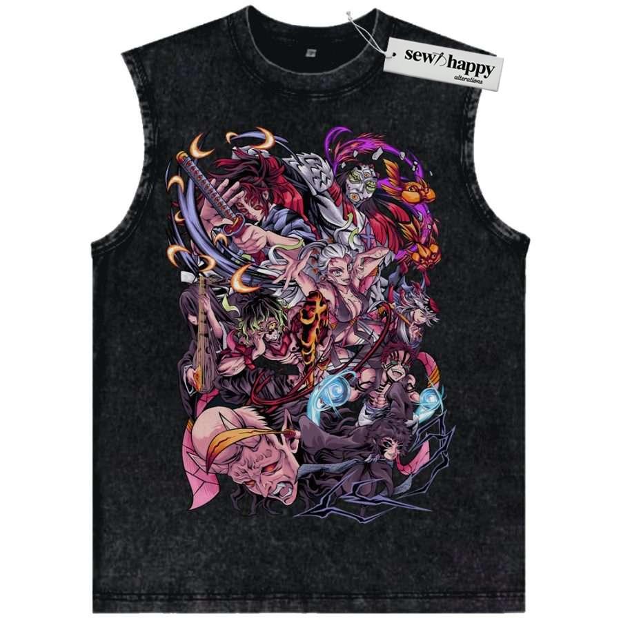 Wash Tank Top Upper Moons – Demon Slayer Tank Top, Anime Tank Top, Vintage Tank Top