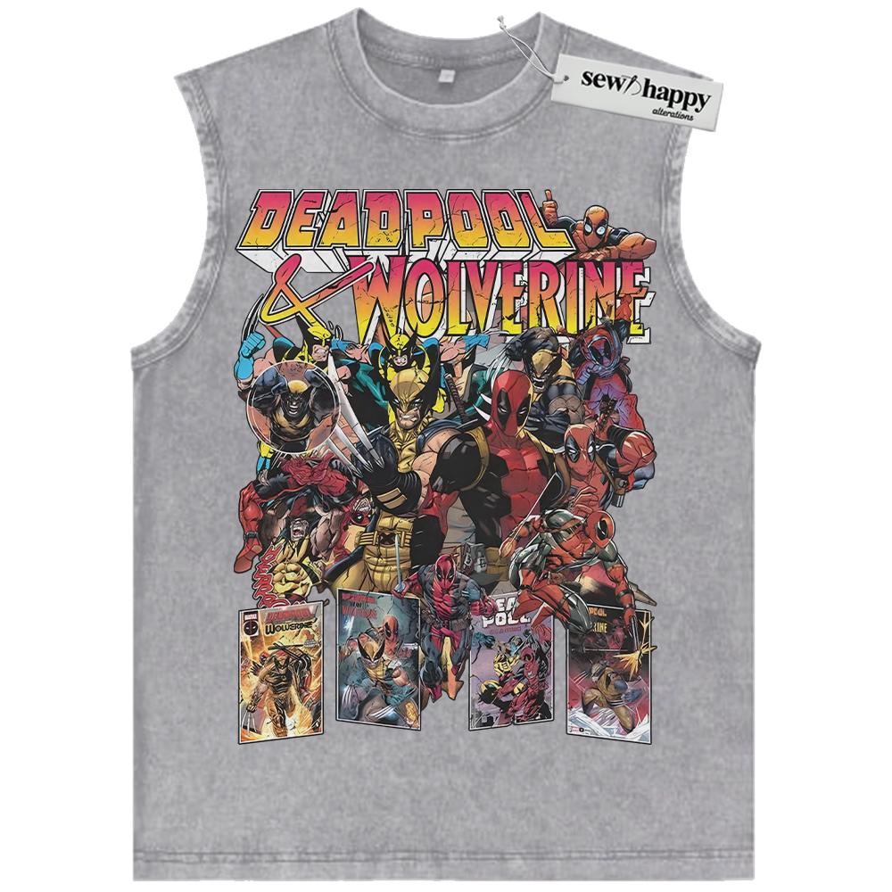 Wash Tank Top Wolverine Tank Top, Deadpool Tank Top, Marvel Comics Tank Top, Vintage Tank Top