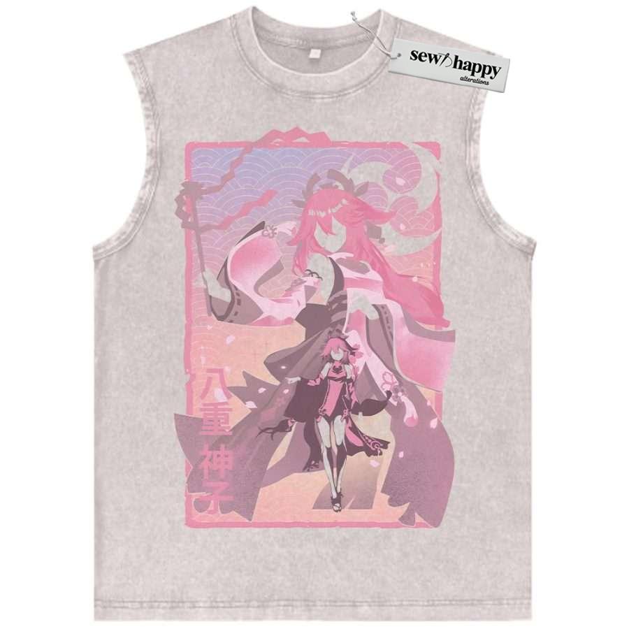 Wash Tank Top Yae Miko Tank Top, Genshin Impact Tank Top, Game Tank Top, Vintage Tank Top