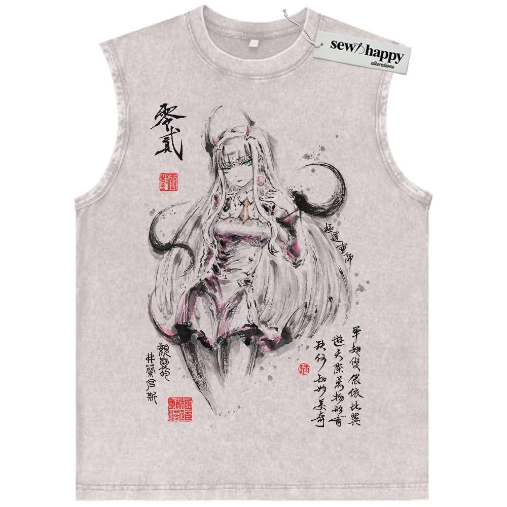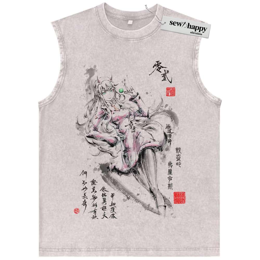 Wash Tank Top Zero Two Tank Top, Darling in the Franxx Tank Top, Anime Tank Top, Vintage Tank Top
